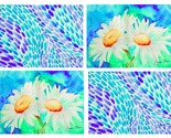 the daisy prints and 2 each of an abstract design of blue to pastel blue