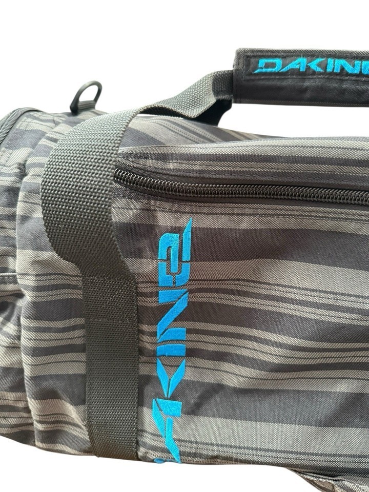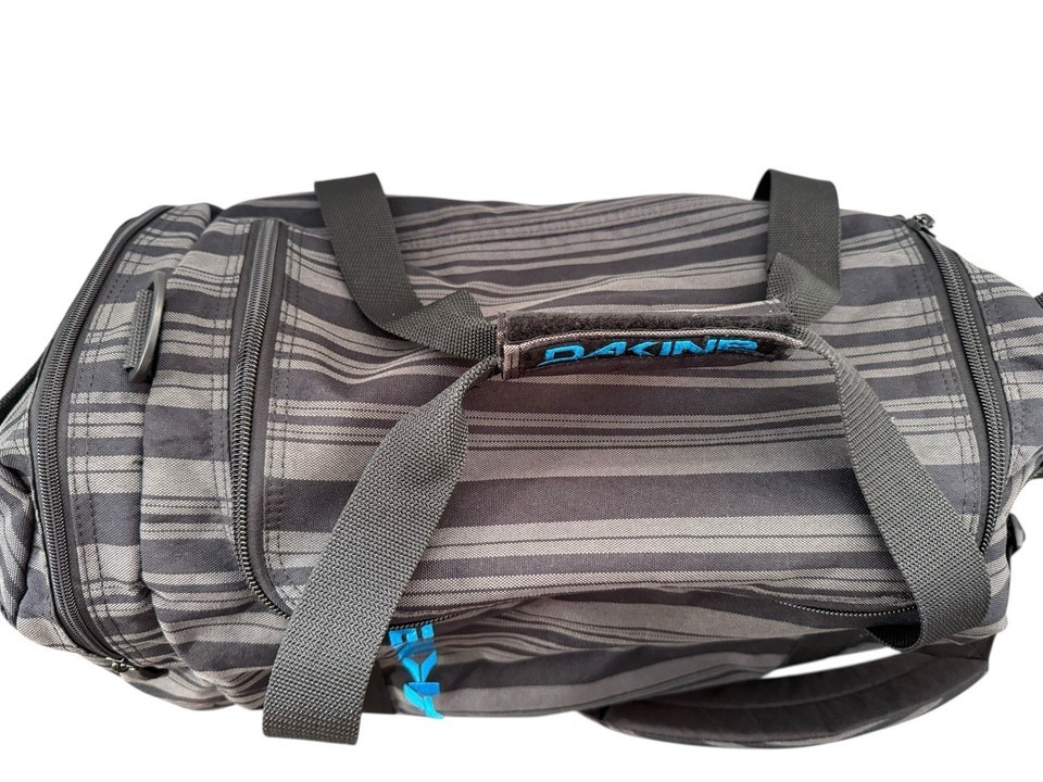 - Dakine EQ Sports Bag 51L Duffle Striped Gray Turquoise Blue Print Gym Carry On
