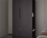 Spacious double-door design opens to a well-organized interior with a built-in hanging rod and multiple shelves?perfect for storing clothing, bags, and accessories in one place.