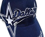 Brand New Dallas City Blue Hat Cap Script Visor Embroidered Signature Double Cowboy Star Logo. Velcro Adjustable, Adult size