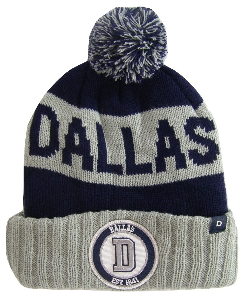 - Dallas Texas Star & D Patch Ribbed Cuff Knit Winter Pom Beanie D Gray/Navy Patch