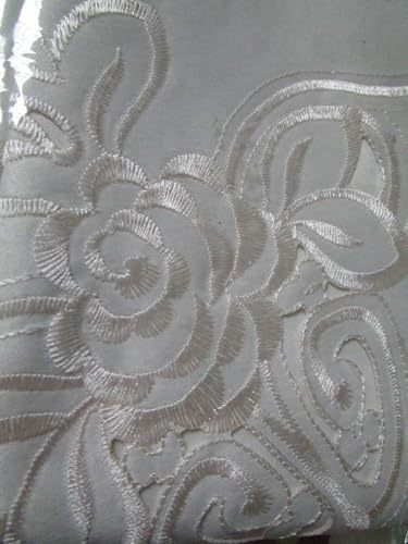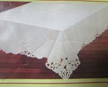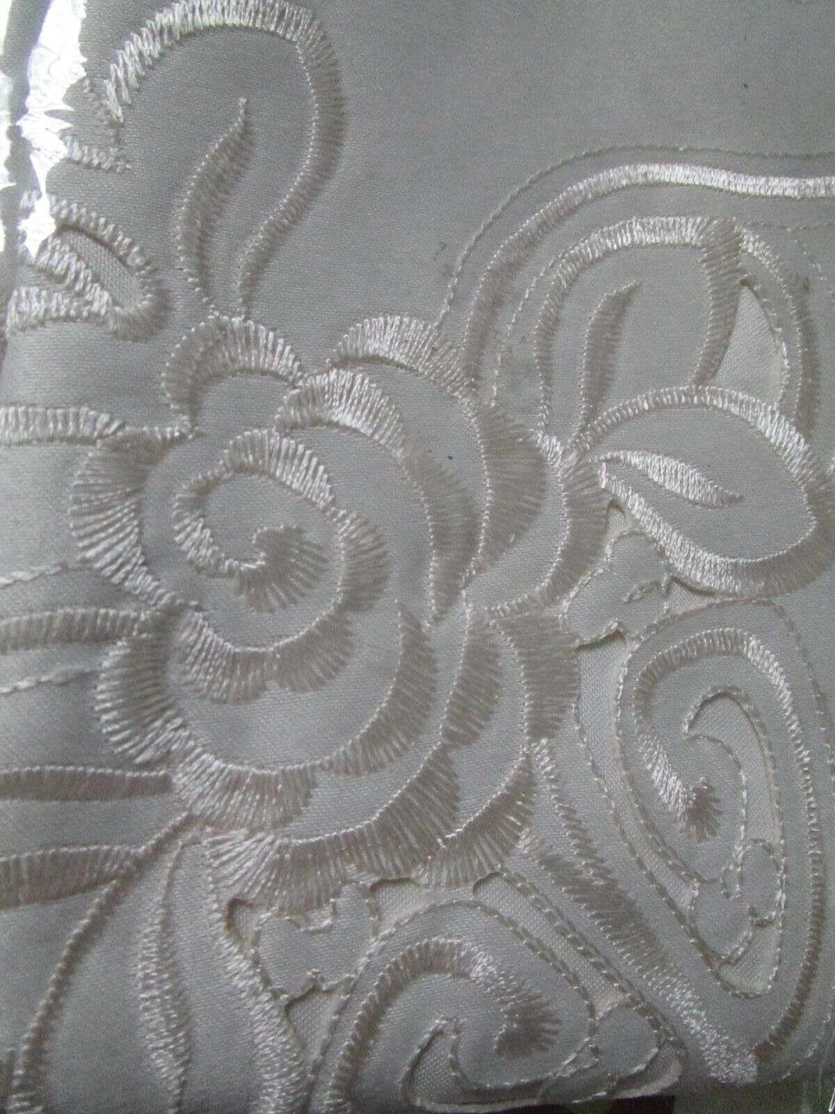 Floral beige roses tablecloth FRANCO DAMASK, 54 x 72" beige NEW, OUT OF THE BAG FOR PICTURES, with embroidered flowers in beige color. Cutwork border with embroidered white silk waves (#200