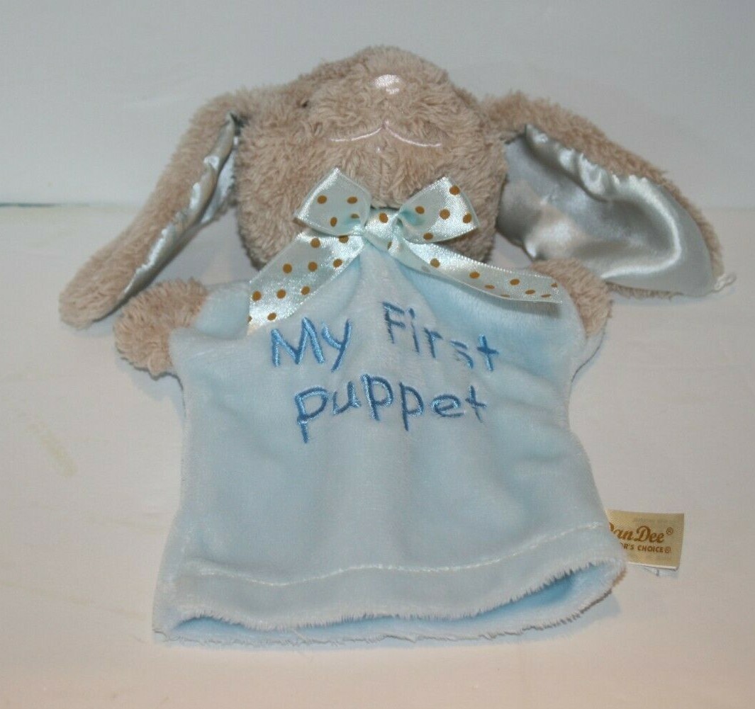 - Dan Dee Easter Bunny Rabbit 9" Blue My First 1st Puppet Satin Ears Bow Soft Toy