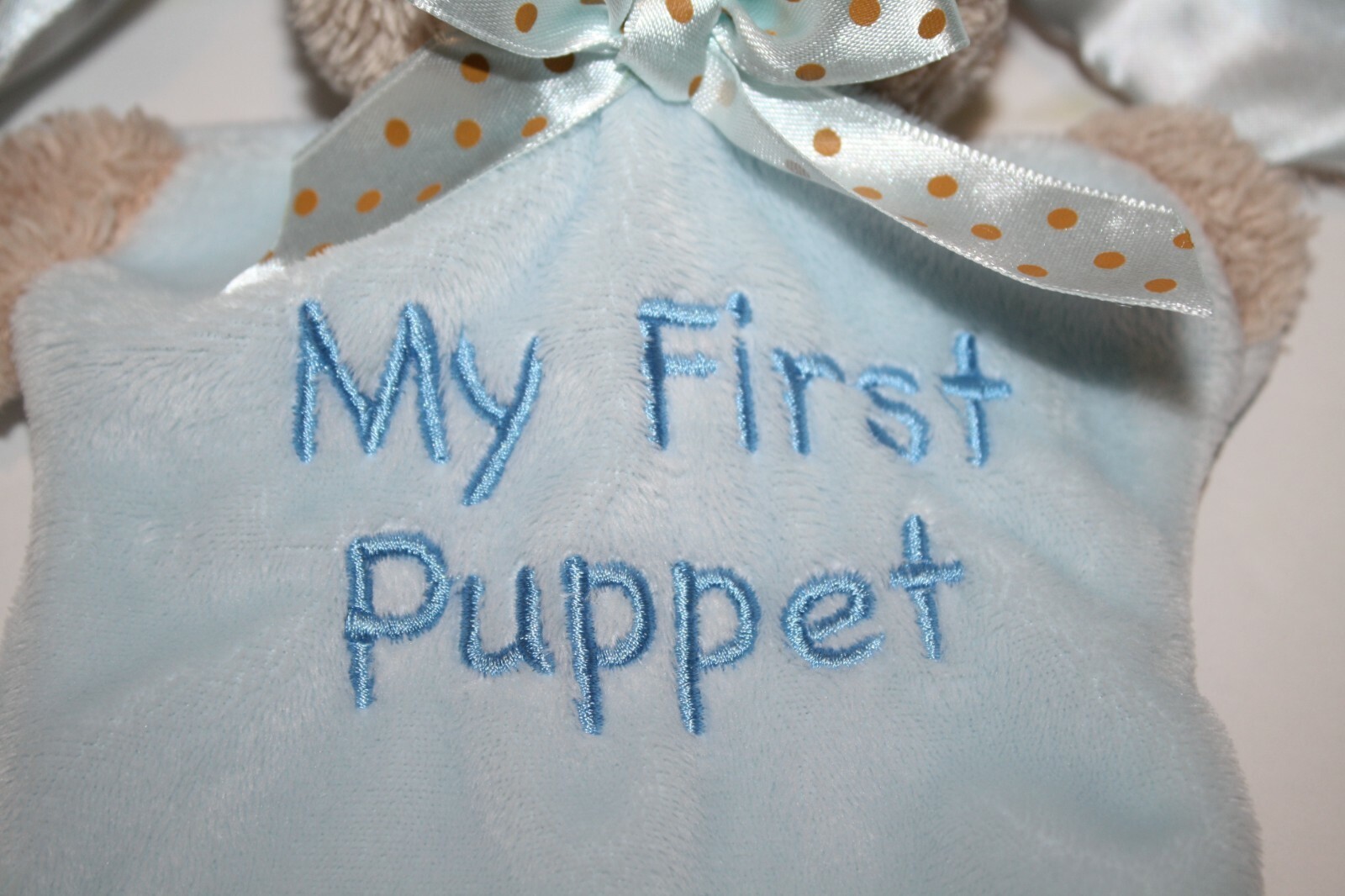 Dan Dee, Blue, Easter Bunny Rabbit, Approx 9 inch, MY FIRST 1st PUPPET, Soft Toy, Satin Ears, Bow, Stuffed Animal