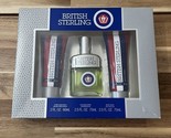 British Sterling Gift Set After Shave Balm Cologne Spray Body Wash. Package has light shelf wear but the products inside are new and unused.