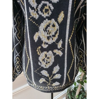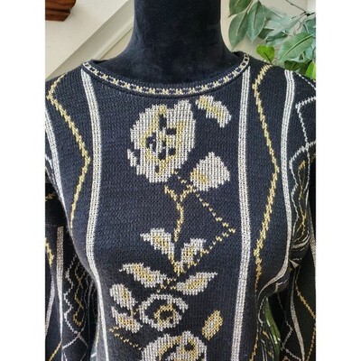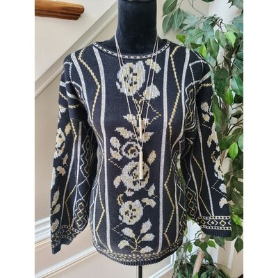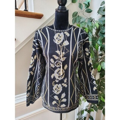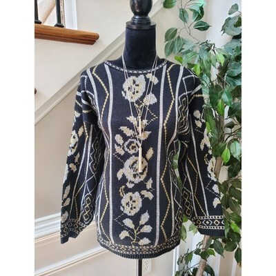 Dana Scott Women's Black Acrylic Round Neck Long Sleeve Pullover Sweater Size M.