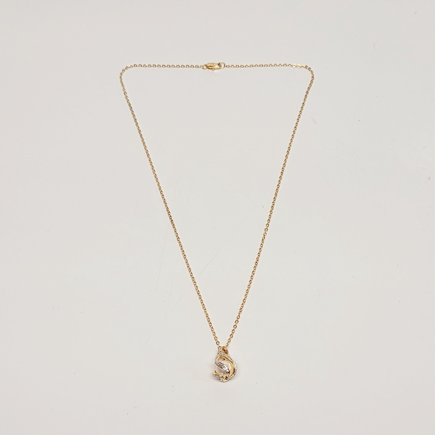 Danbury Mint- Love's Embrace Freshwater Pearl & Diamond Necklace Yellow 14KGP