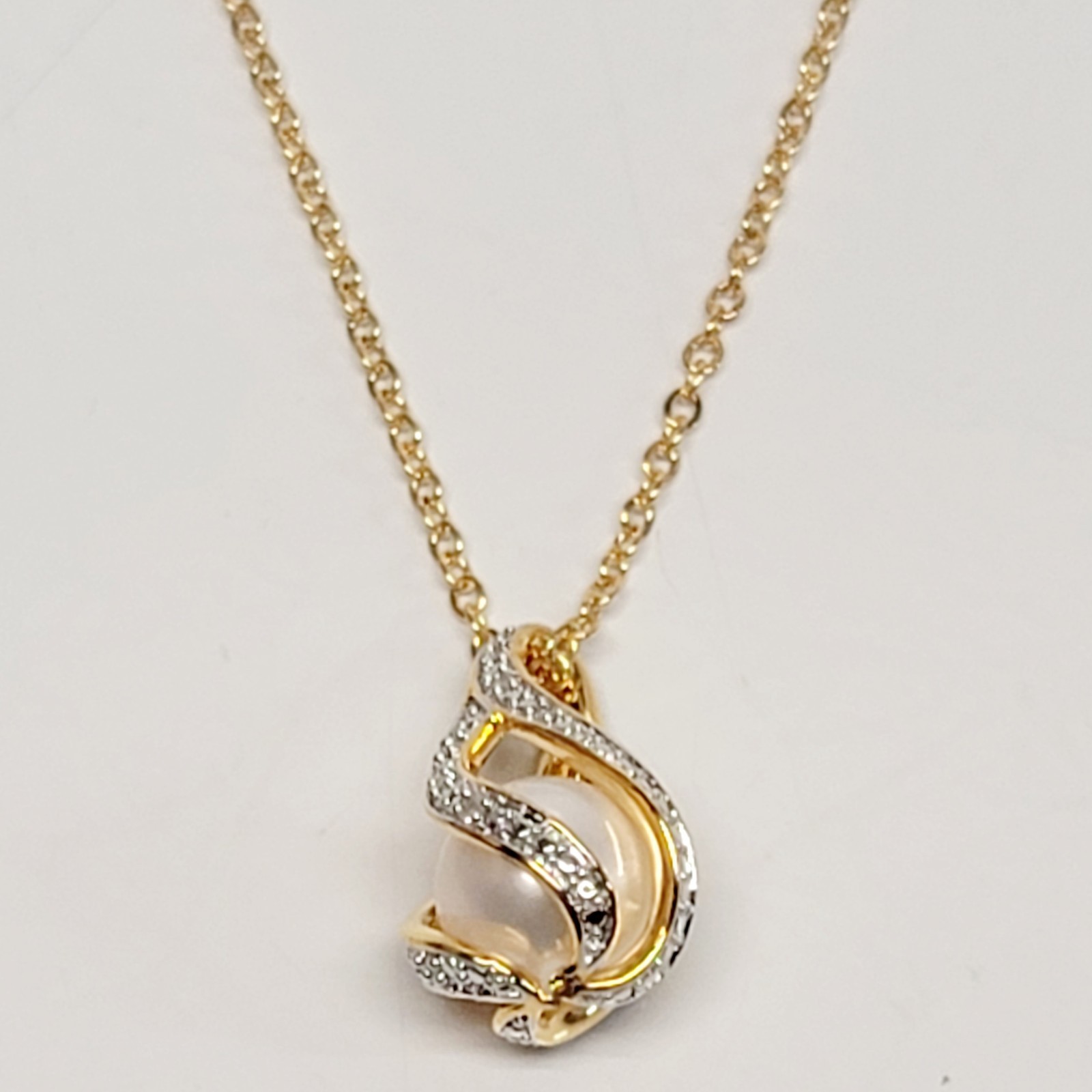 - Danbury Mint- Love's Embrace Freshwater Pearl & Diamond Necklace Yellow 14KGP