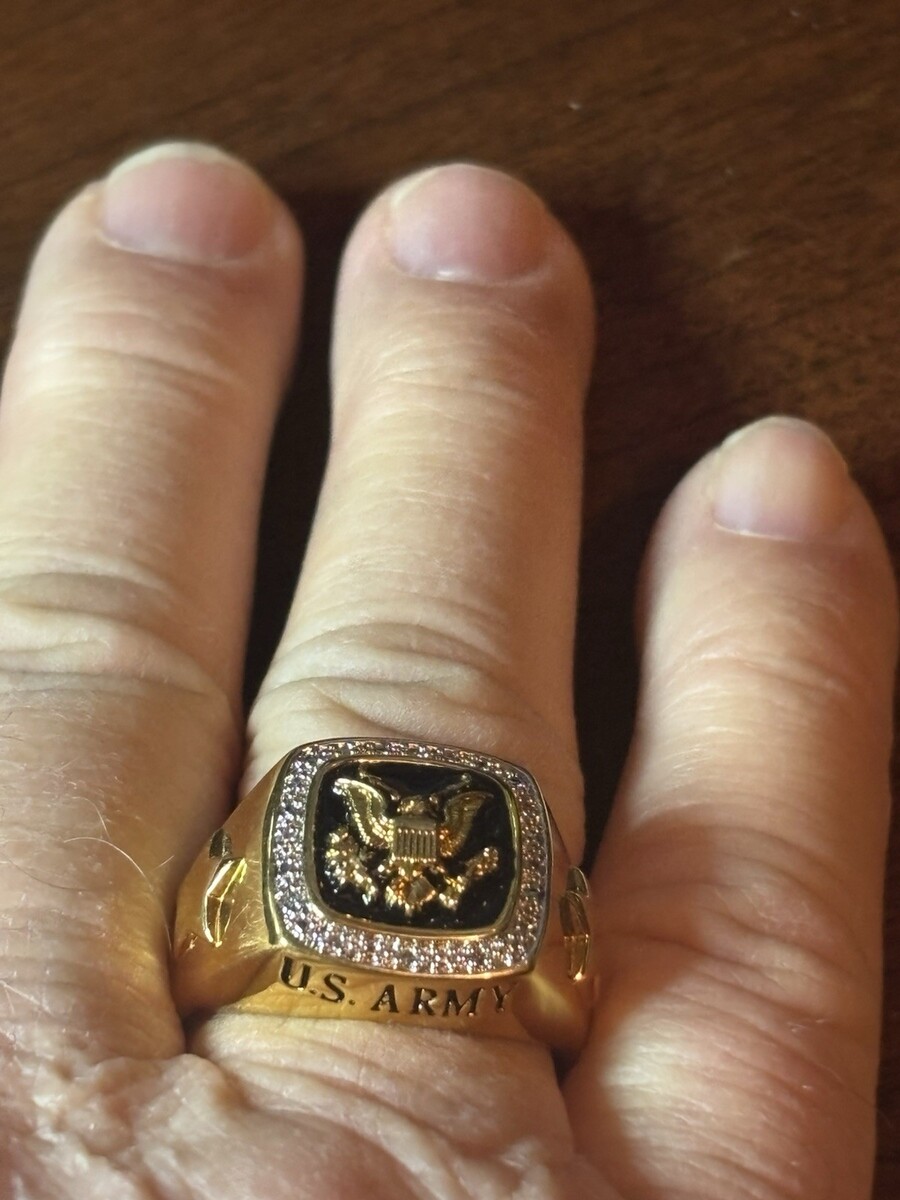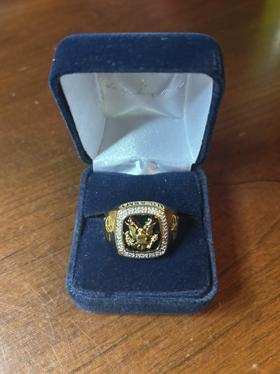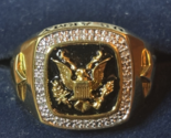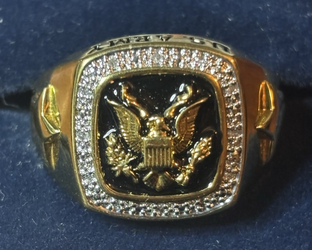 - DANBURY MINT U.S. ARMY Gold Plated Men's Ring Eagle Black Enamel