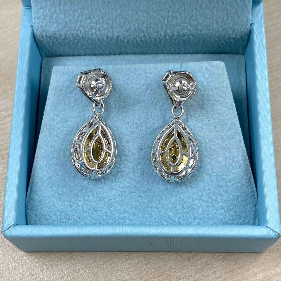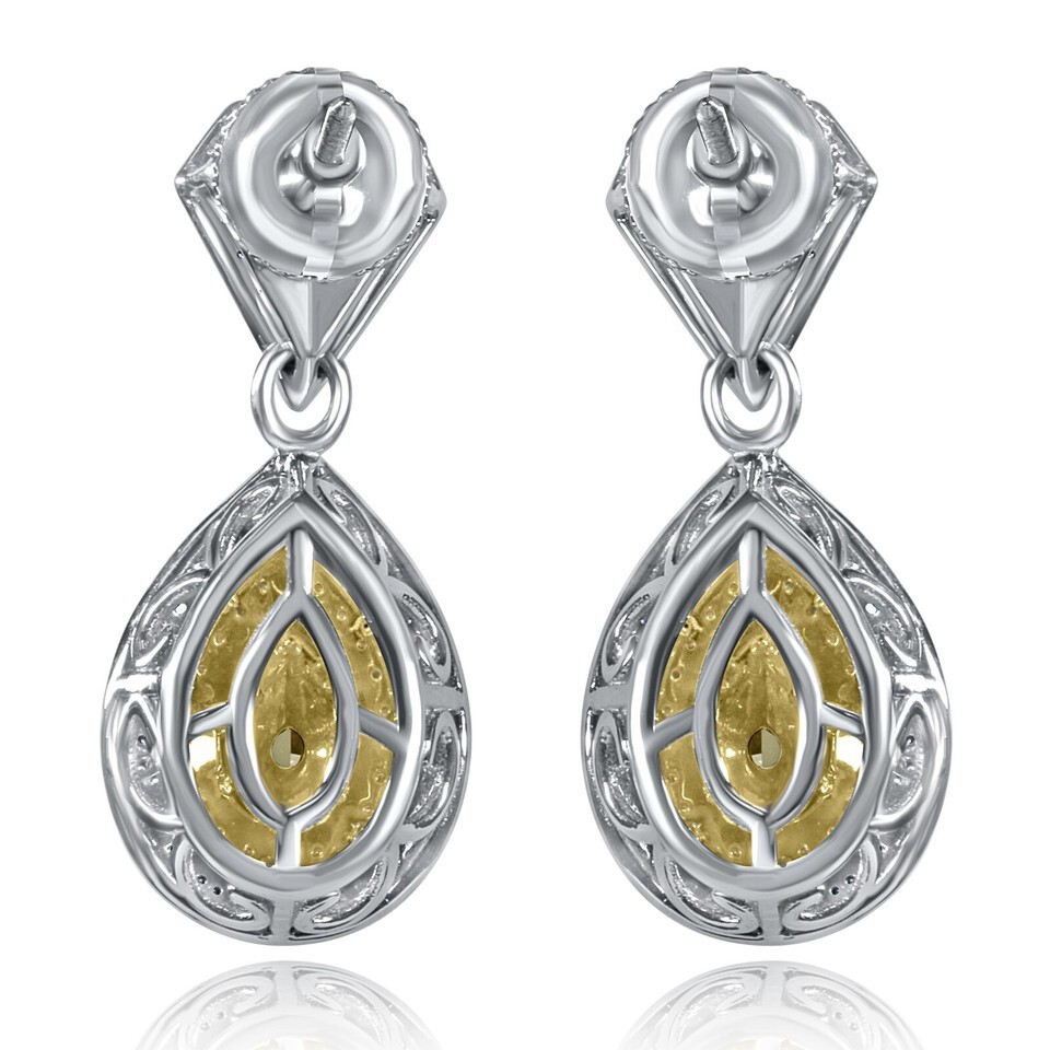 - Dangle Earrings 1.59 TCW Yellow Pear Brilliant Cut Trillion Diamond 14k Gold