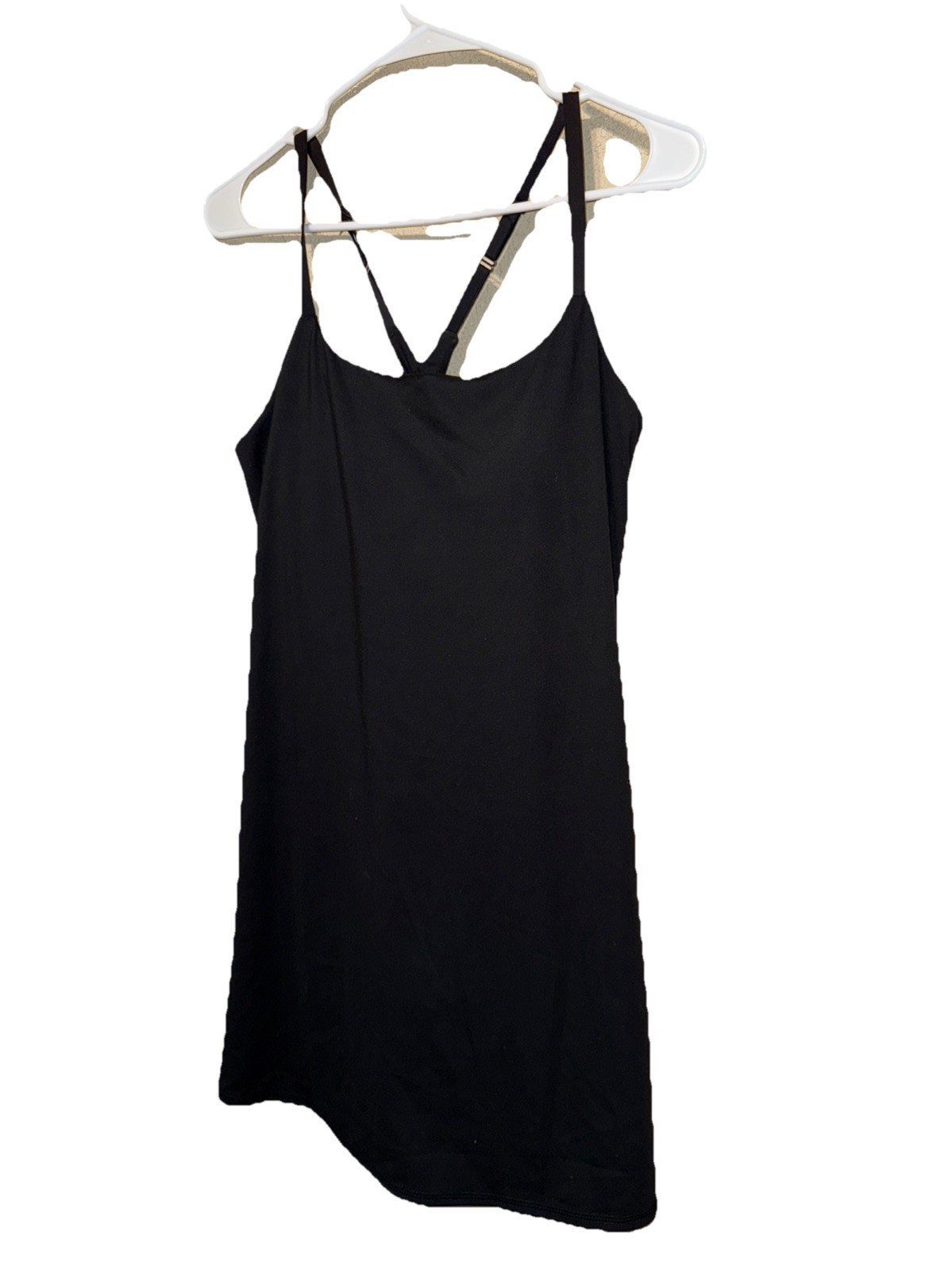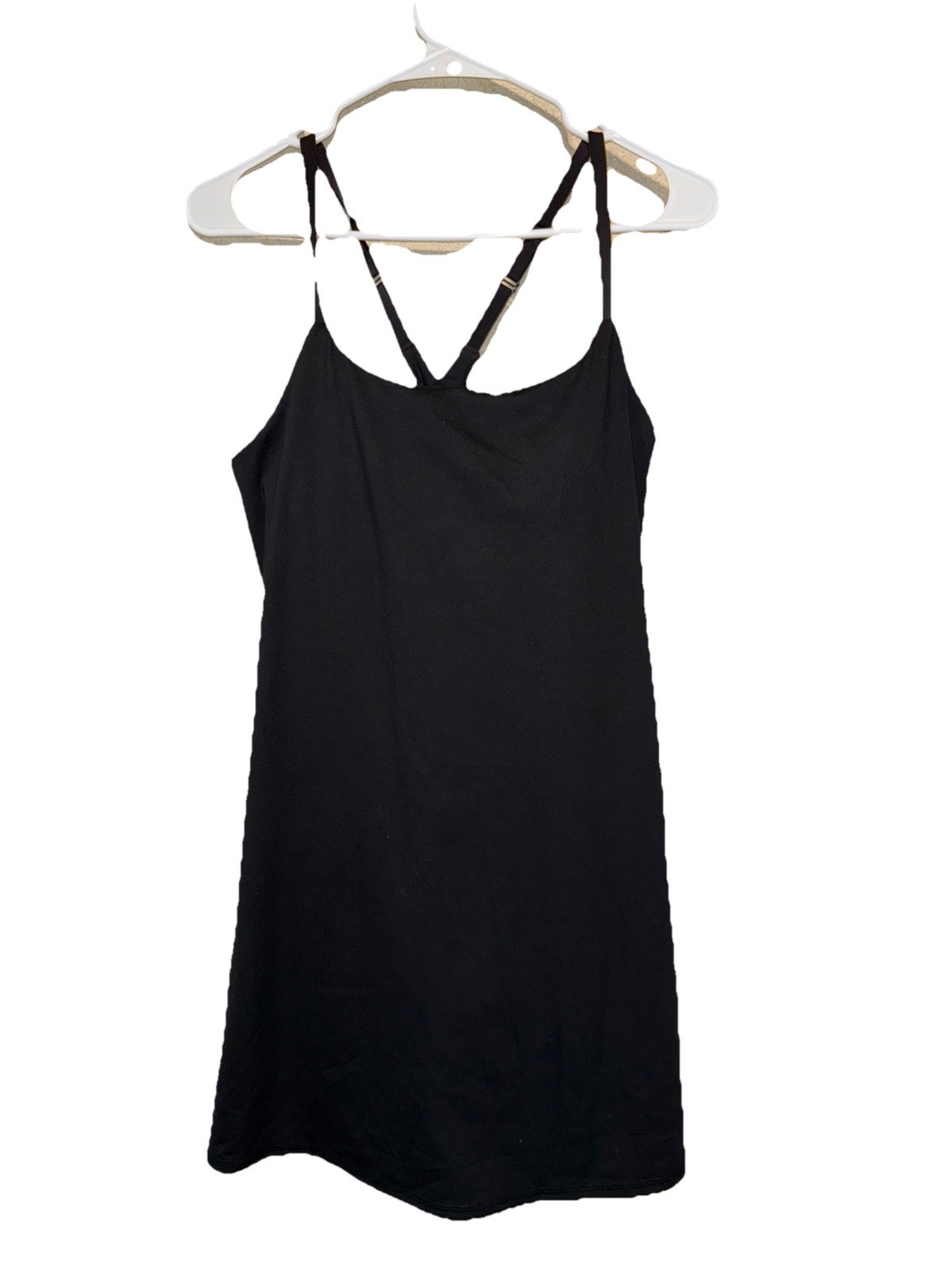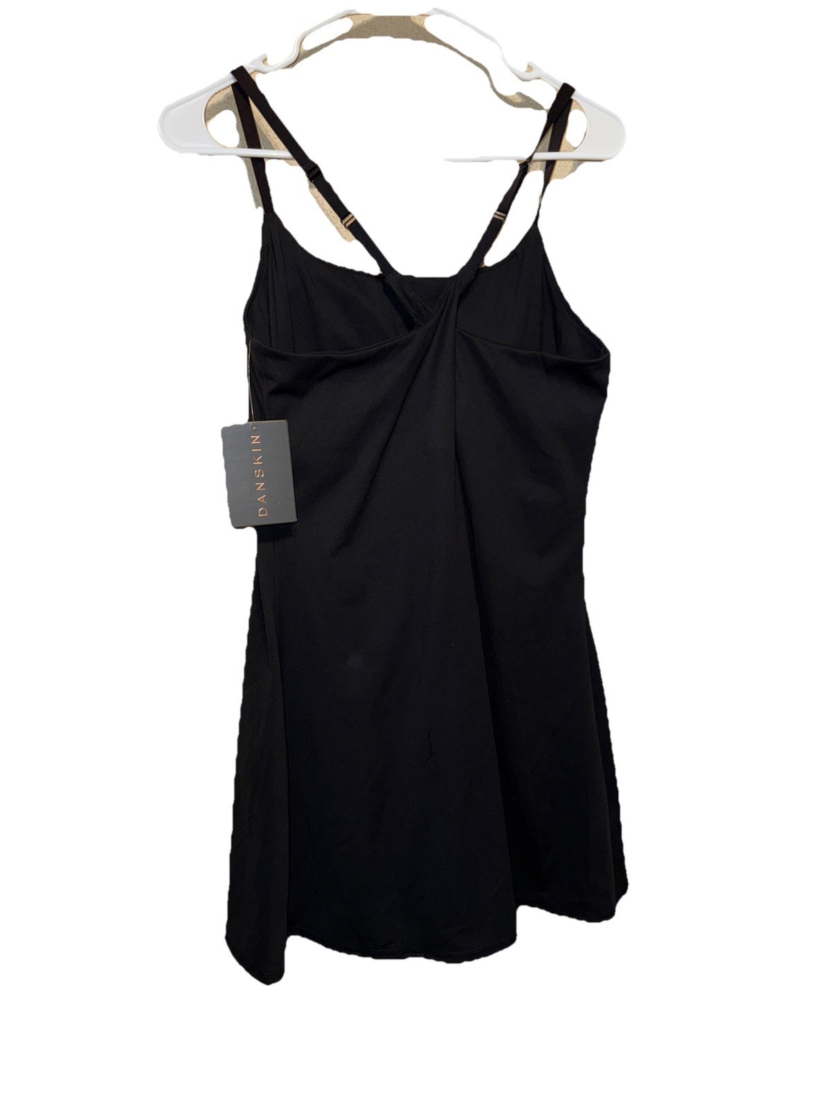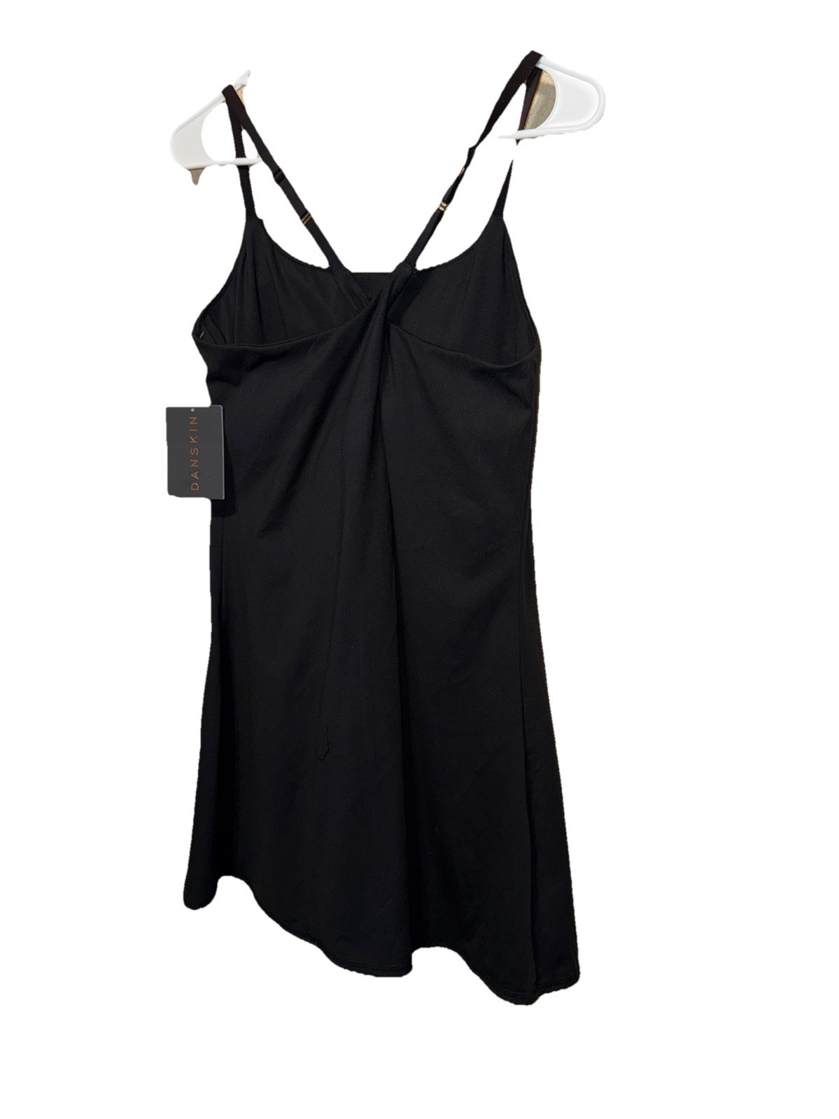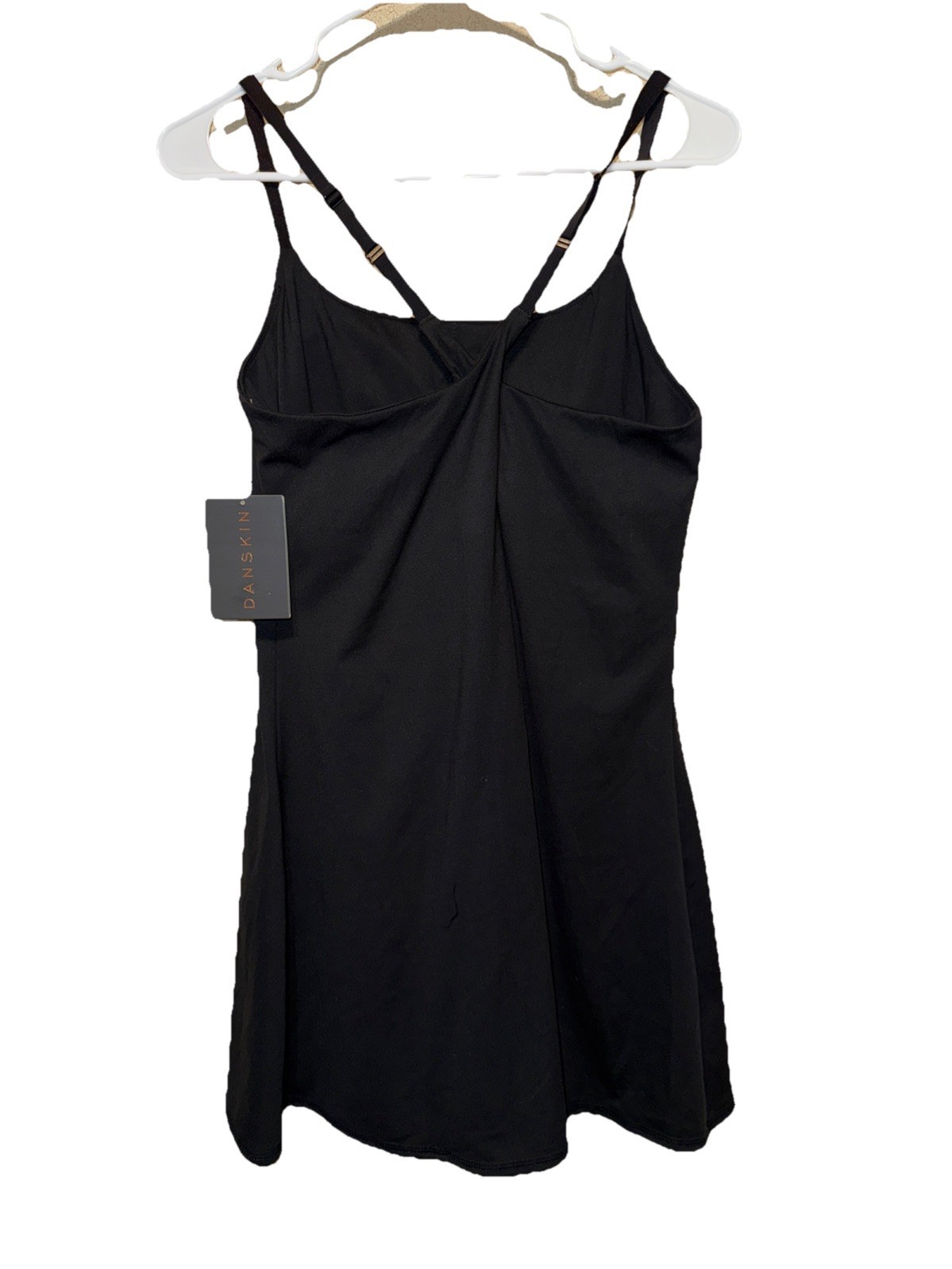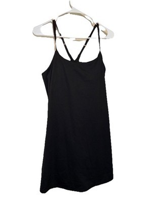Danskin Athletic Mini Skort Dress with Built In Removable Pads Bra and Shorts and Cross Back Cami Straps in BLACK