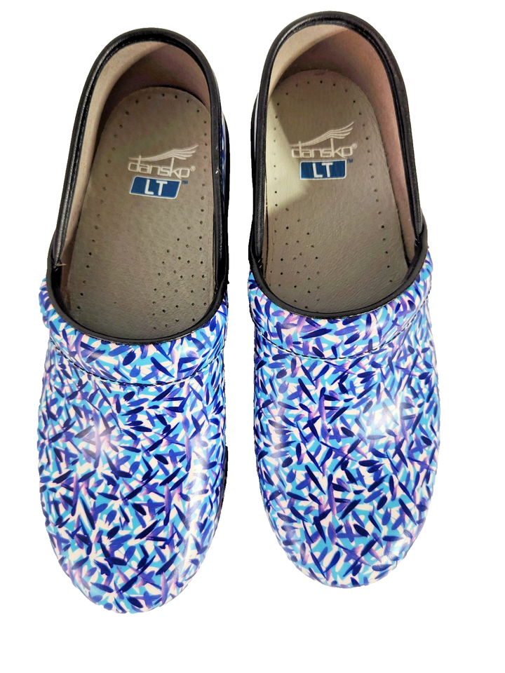 - Dansko LT Pro Clog Leather Womens EU 38 US 7.5 - 8 Blue Dash Multicolor Print