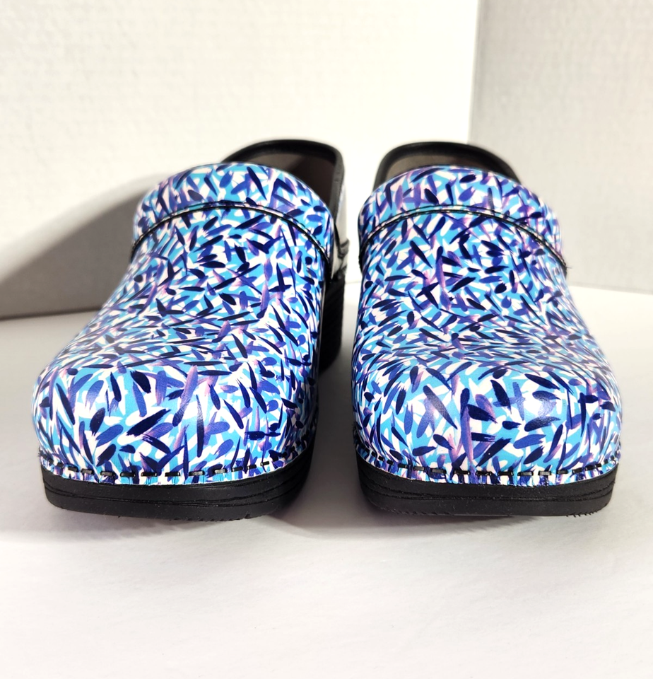 Dansko LT Pro Clog Leather Womens EU 38 US 7.5 - 8 Blue Dash Multicolor Print