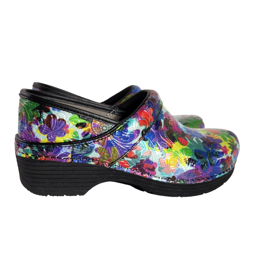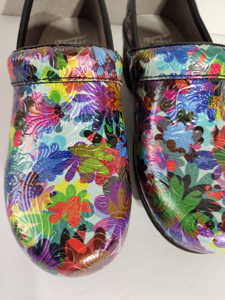 - Dansko LT Pro Clog Retro Flower Tooled Leather Multicolor Womens EU 38 US 7.5-8