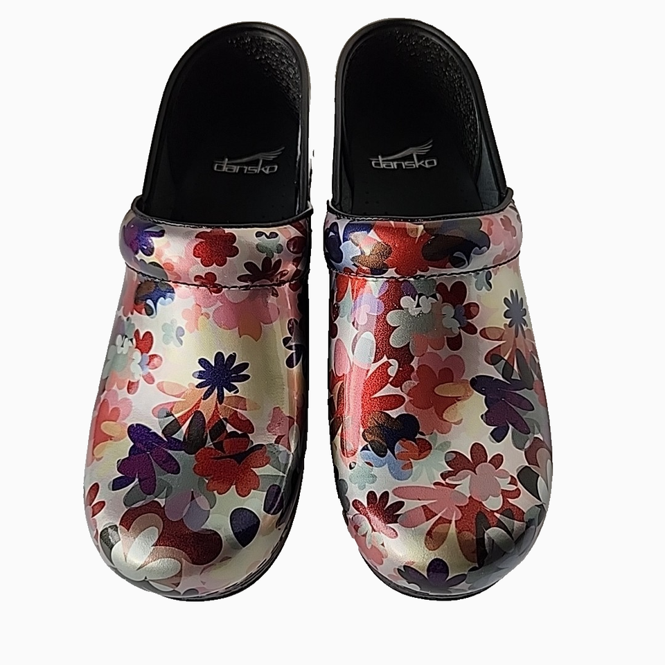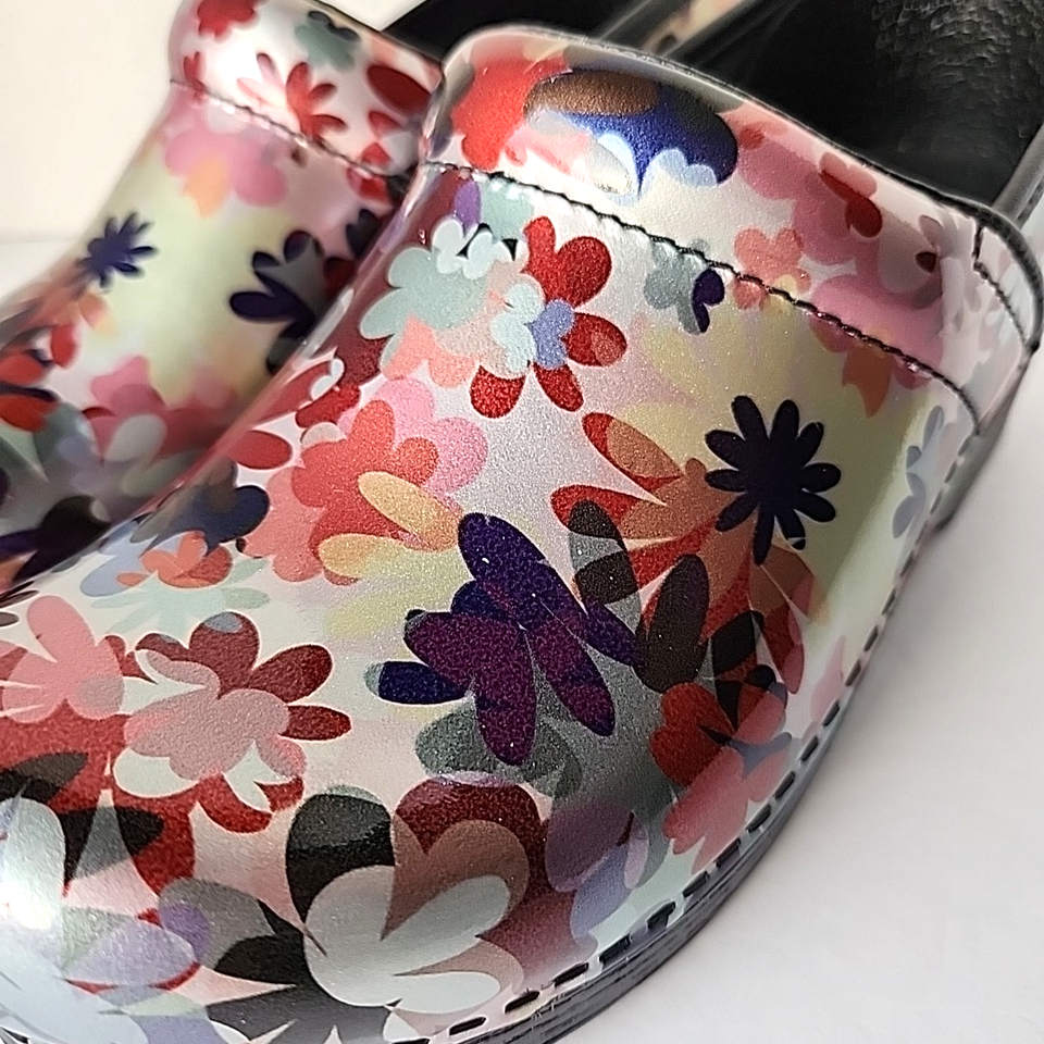 - Dansko Pro Clog Multicolor Boho Flower Patent Leather EU Size 38 US 7.5 8