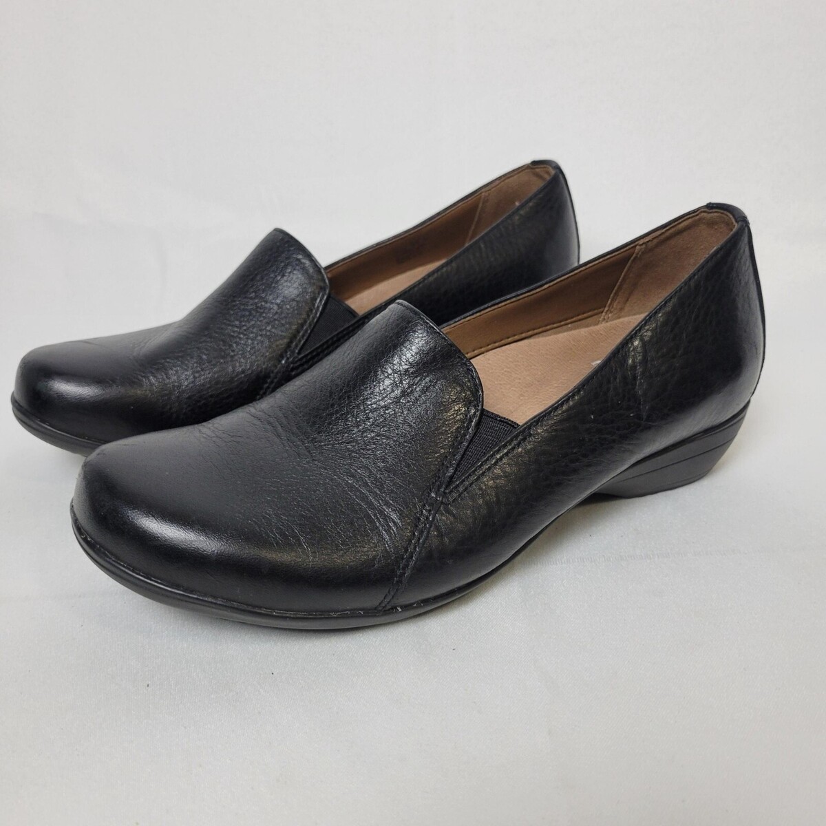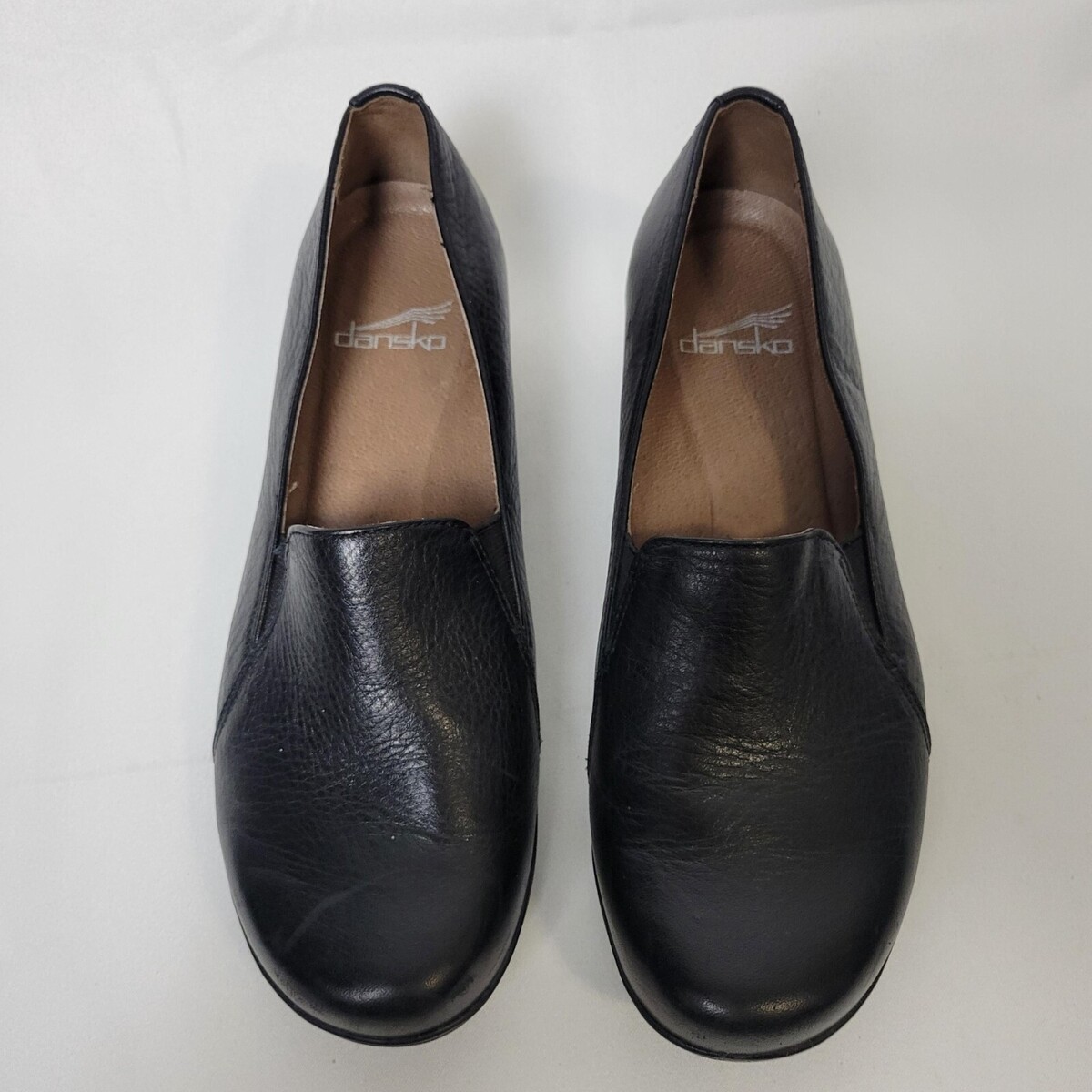 - Dansko Shoes Womens 37 US 6 Farah Loafers Clogs Black Leather Career Wedge