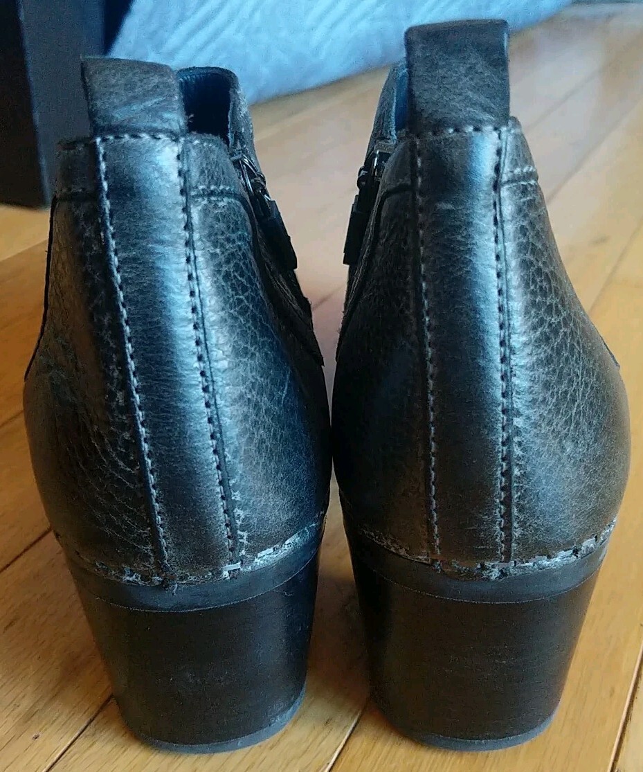 Dansko Women's Harlene Ankle Boot Charcoal Gray Distressed Sz 36- 5.5/6 US. A few scuffs and a circular indent in the leather from storage. Please see pictures for exact condition.