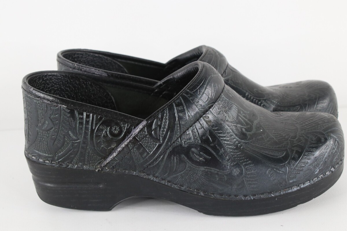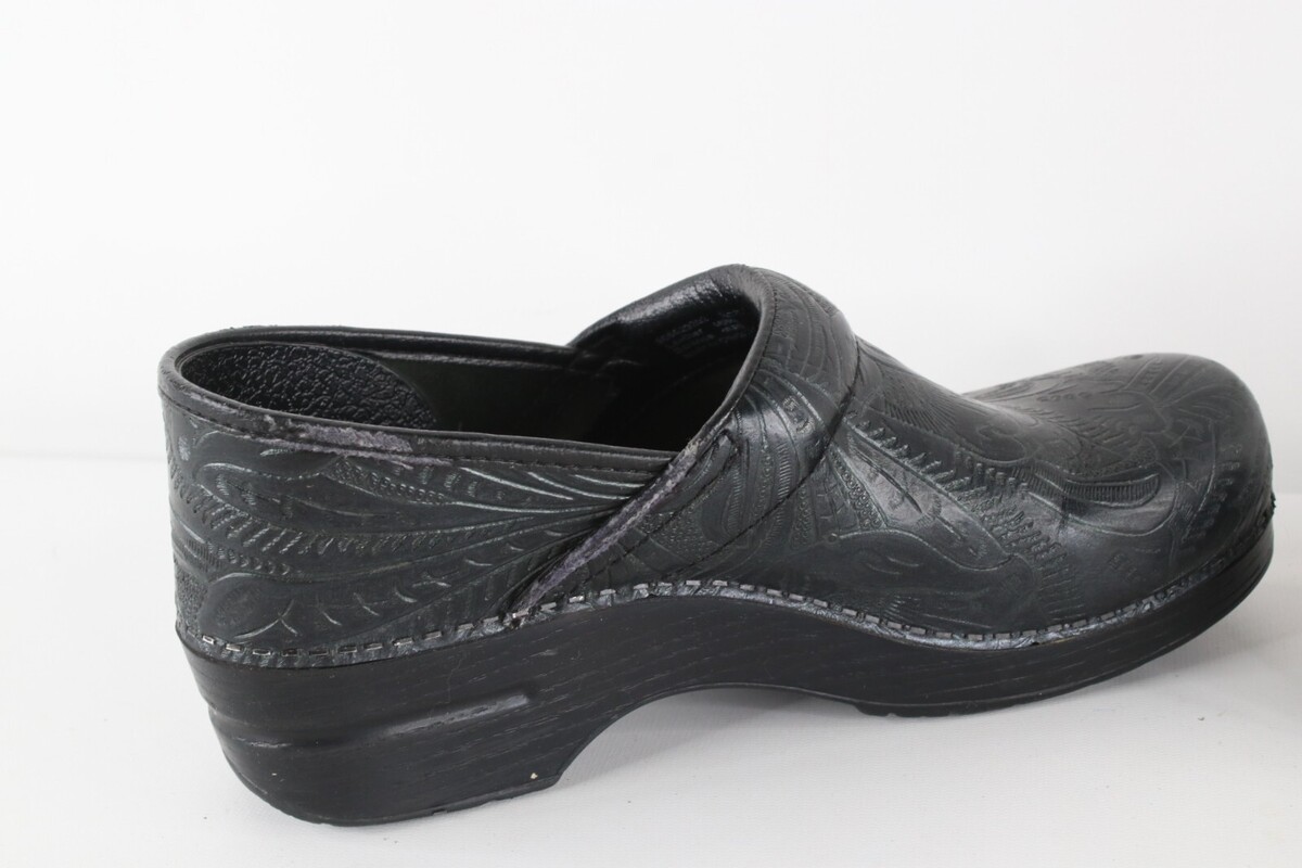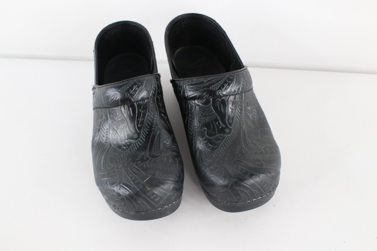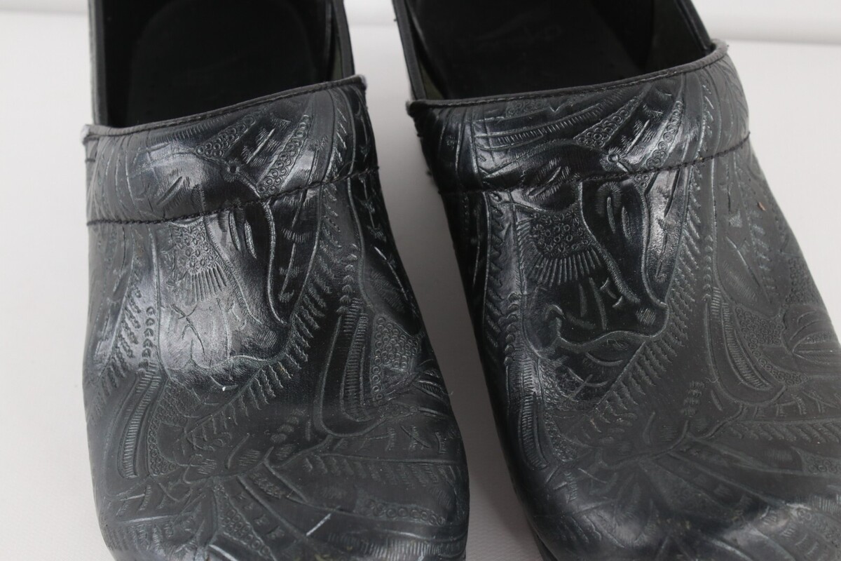 - Dansko Womens EU 40 US 9.5 10 Flower Leather Slip On Clogs Mules Shoes Black