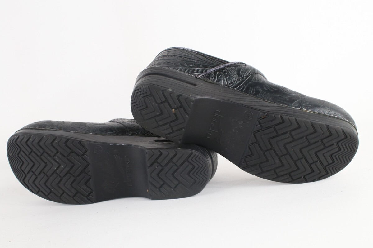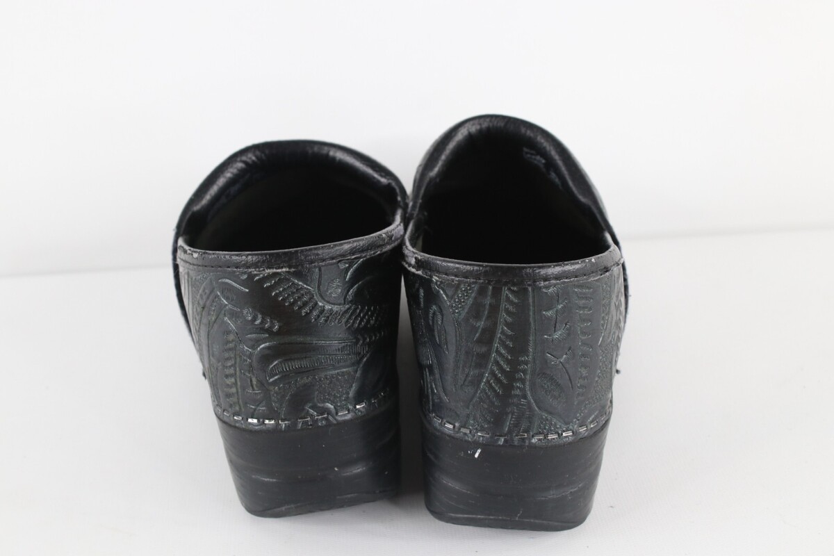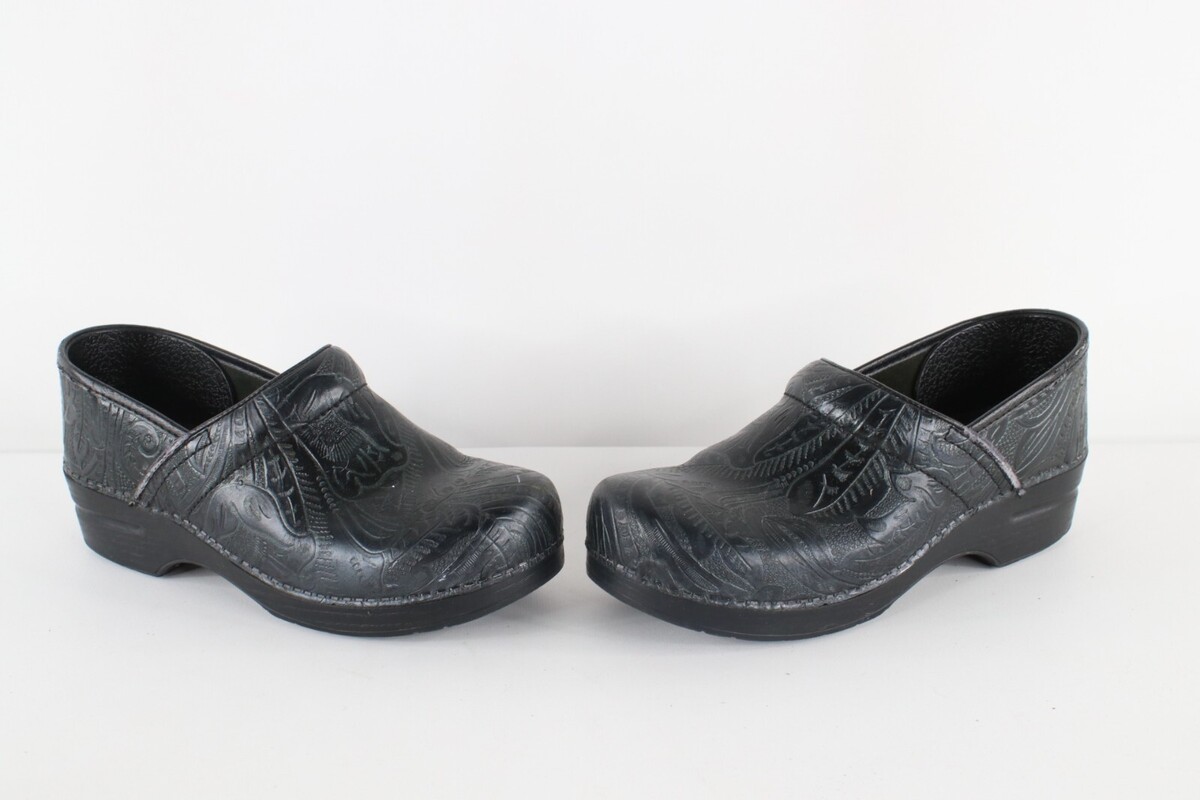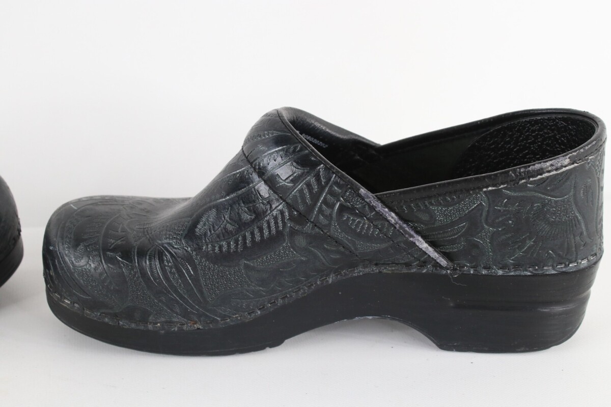 - Dansko Womens EU 40 US 9.5 10 Flower Leather Slip On Clogs Mules Shoes Black