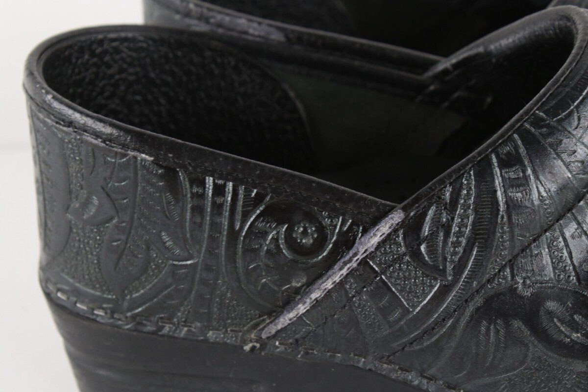 Dansko Womens EU 40 US 9.5 10 Flower Leather Slip On Clogs Mules Shoes Black