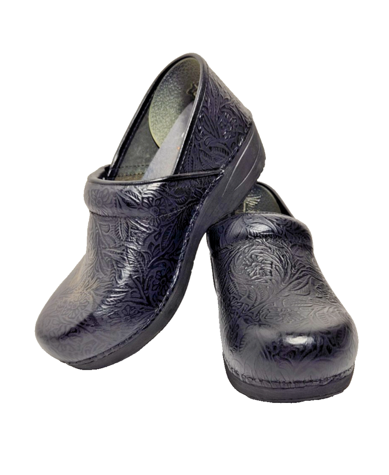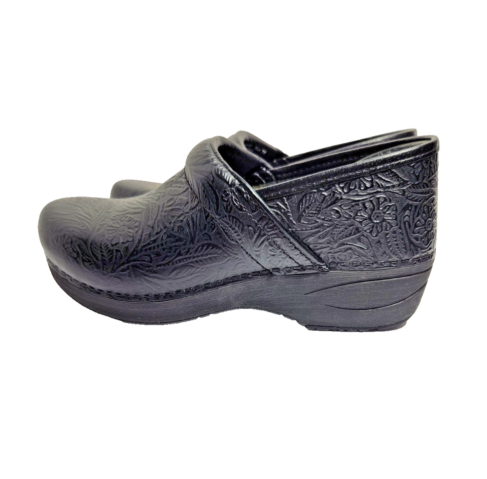 - Dansko XP 2.0 Black Floral Tooled Clog Womens Size EU 38 US 7.5 8 Leather
