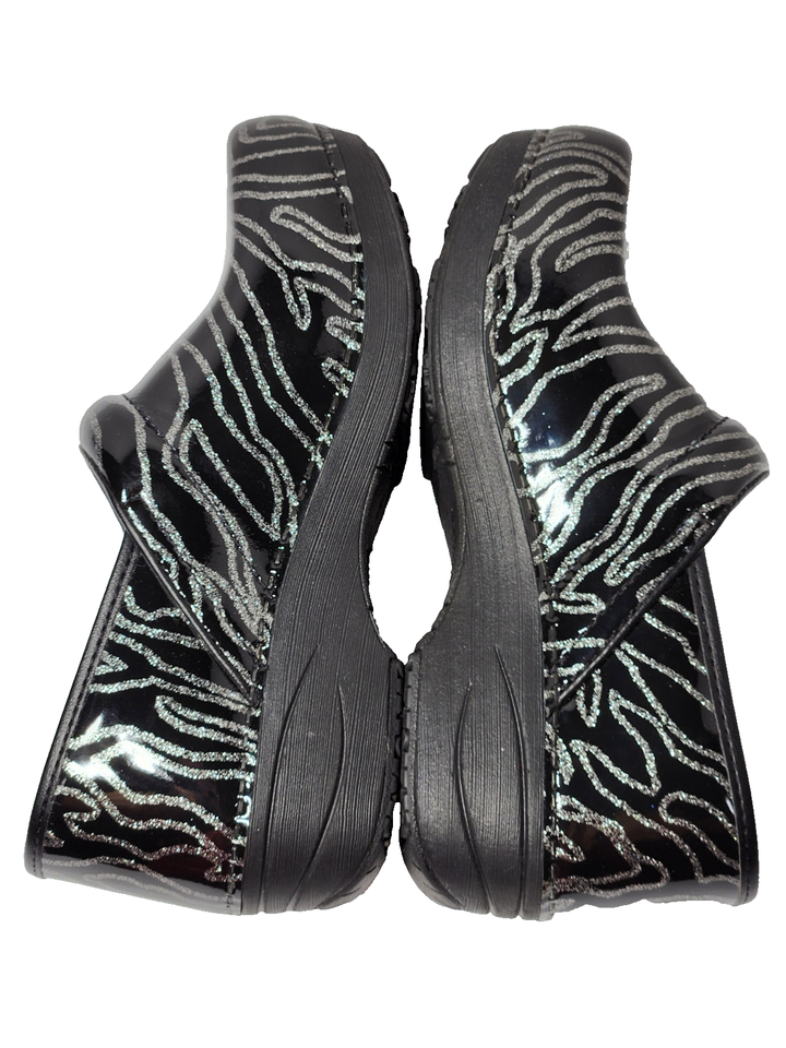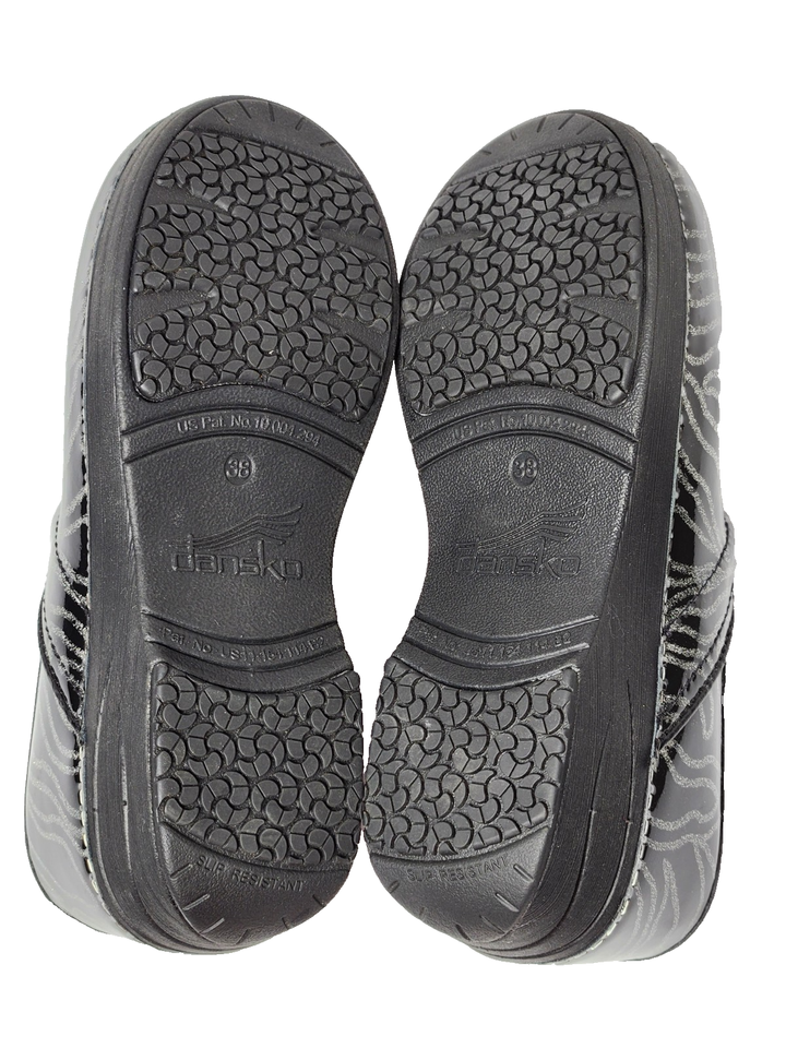 - Dansko XP 2.0 Patent Leather Glitter Waves Clog Womens Size EU 38 US 7.5 8 Black