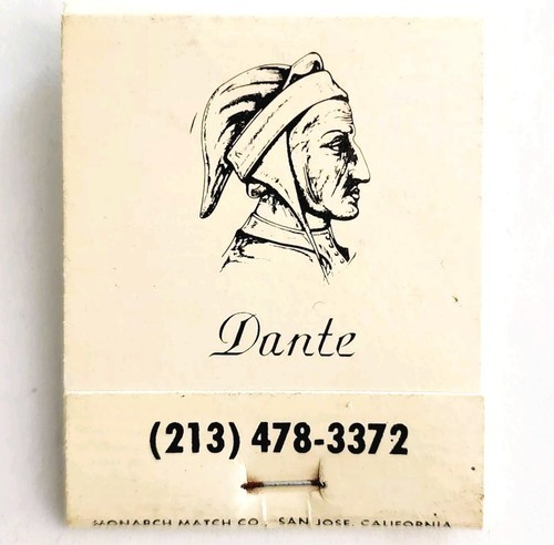 - Dante Italian Restaurant Vintage Matchbook Los Angeles Matches Unstruck E19E