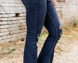 Dusk Blue High Rise Ripped Distressed Hem Flared J...