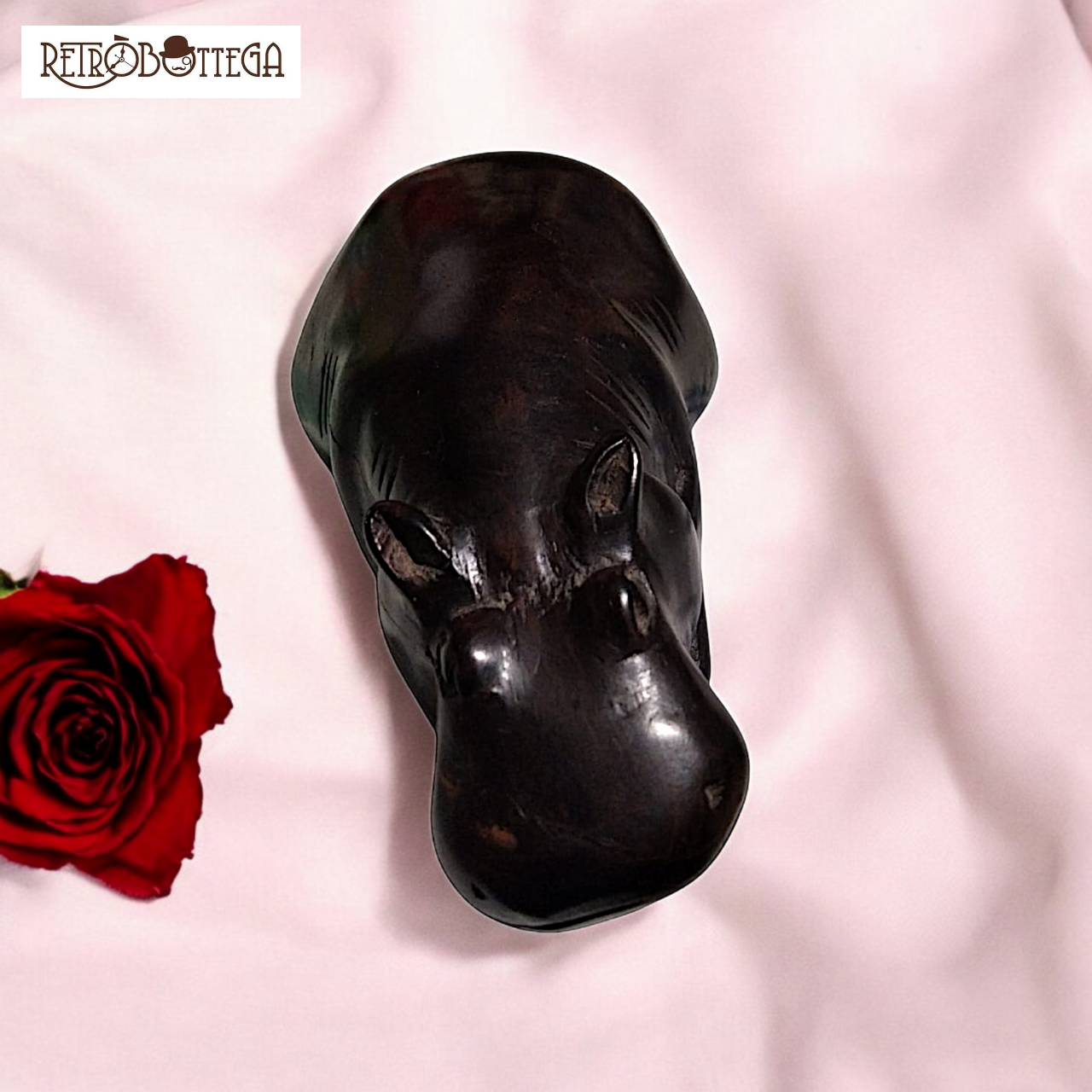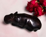Dark Wood Hippo Paperweight Hand Carved and Sanded Elegant RARE