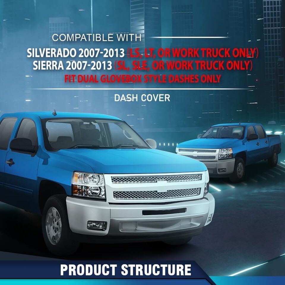 - Dash Board Cover Compatible with 2007-2013 Chevy Silverado LS WT LT GMC Sierra