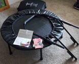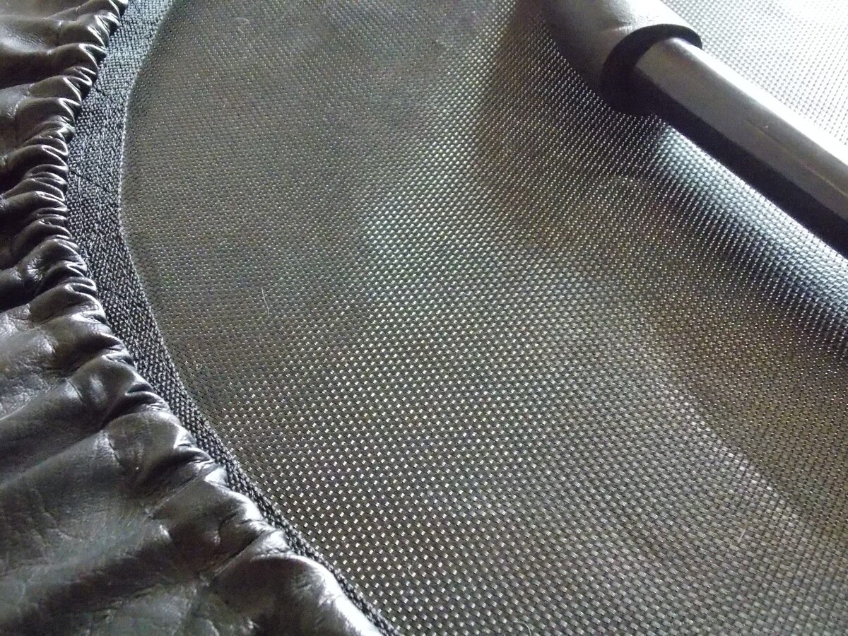 very nice high quality name brand, rebounder. unit has only seen light use and is excellent shape, only slight defect is in the carry bag the zipper is starting to come detached in a area near the top of bag see last few photos if your good with a heavy needle and thread that could easily be stitched up.
