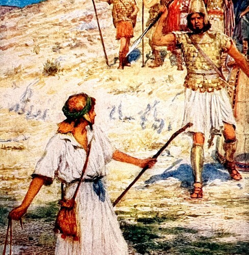 - David And Goliath Of Gath Battle 1900 Color Plate Victorian Religious Art DWAA7
