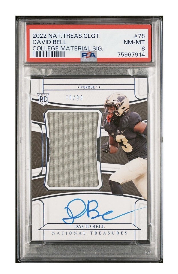 - David Bell RC 2022 National Treasures Patch Auto On Card Auto #/99 PSA 8 -Browns