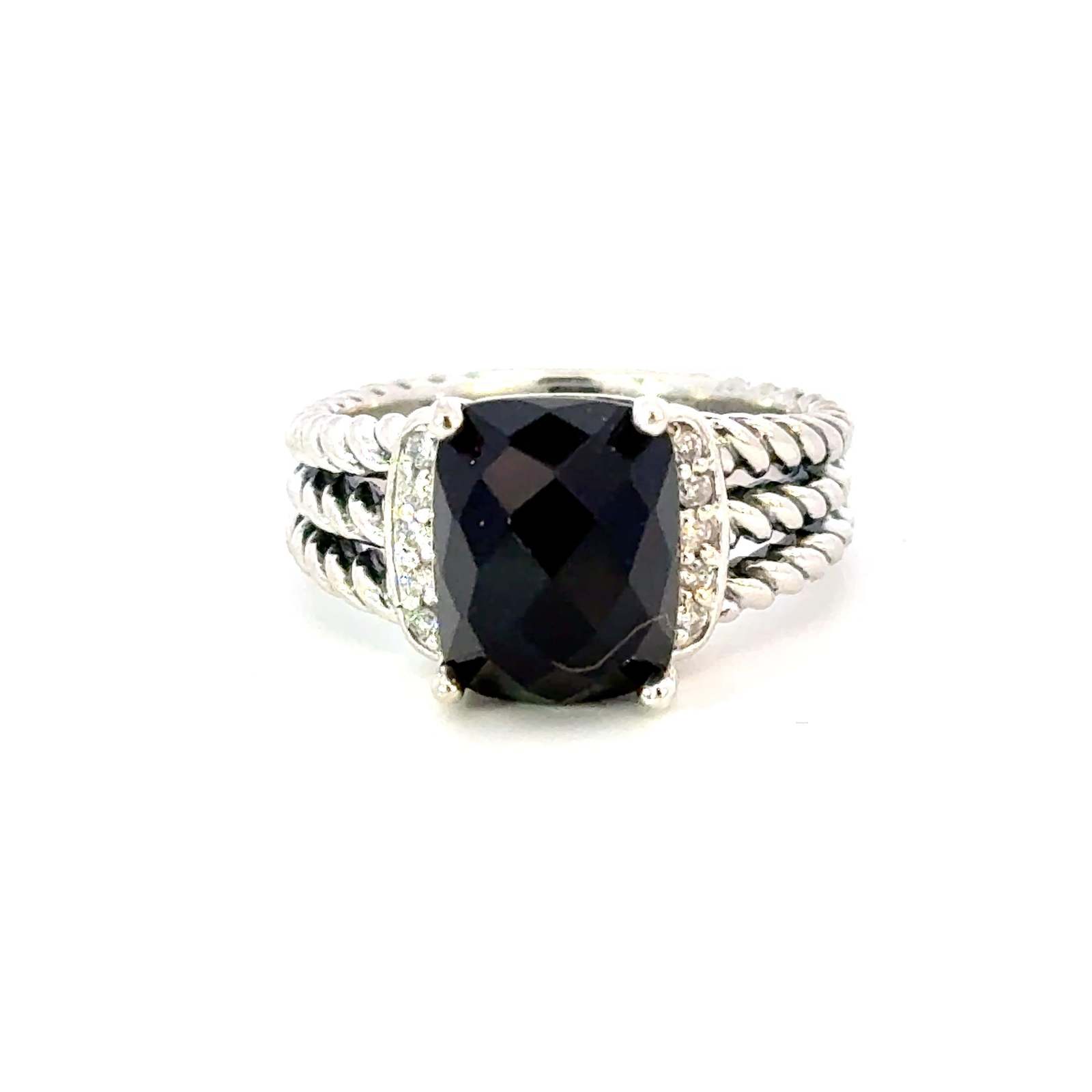 - David Yurman Onyx Diamond Ring Size 5.5 Sterling Silver Estate DY653