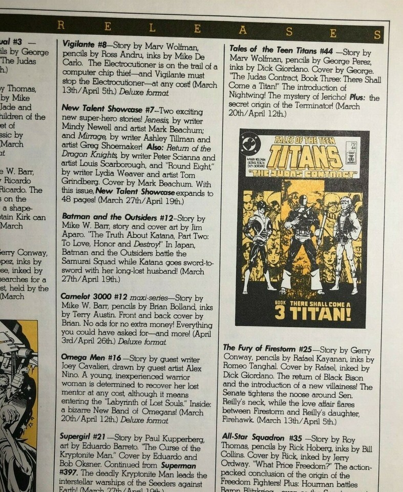 DC COMICS RELEASES #2 1984 Blackhawk #271 listing VG+