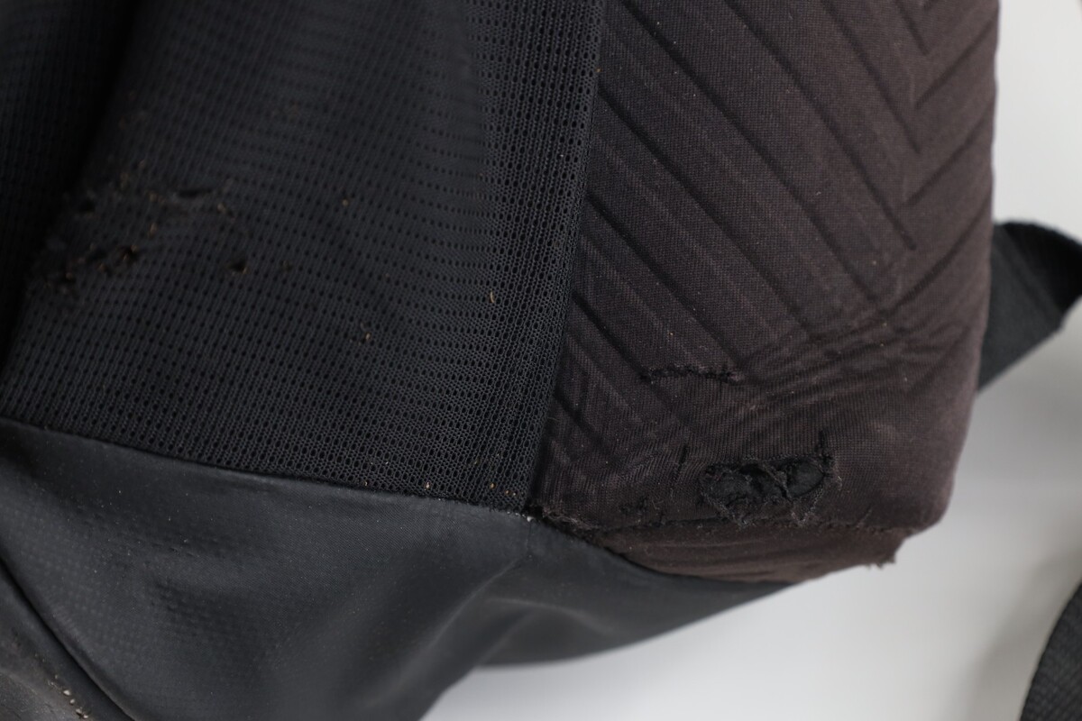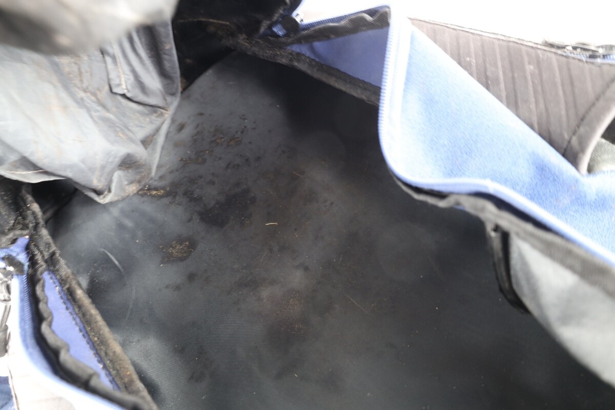 Small holes on bat holders sleeves. Blemishes inside and outside. Sticky/stuck material inner pocket