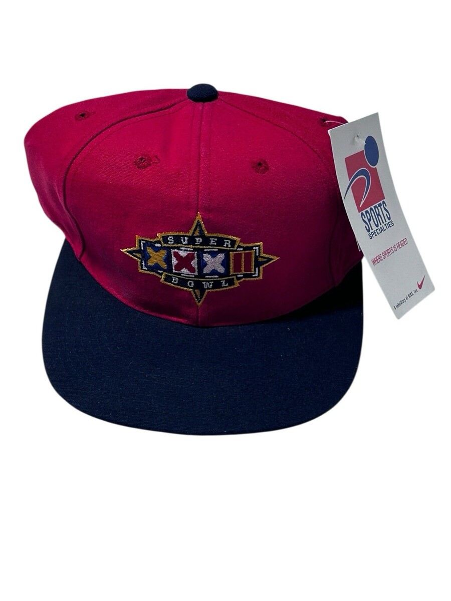 This Sports Specialties 1998 Super Bowl XXXII Hat is a must-have for any Denver Broncos fan. The red cap with the XXXII logo is officially licensed by the National Football League (NFL) and perfect for both men and women. It's a one-size-fits-all cap, ideal for anyone who loves football and wants to show support for the Big Game!