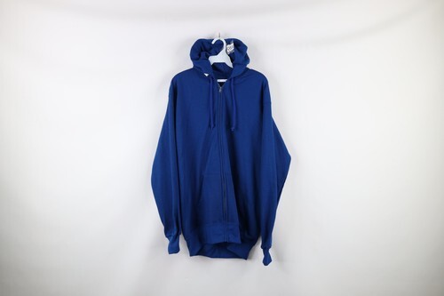 - Deadstock Vintage 70s Streetwear Mens Large Tall Blank Full Zip Hoodie Blue USA