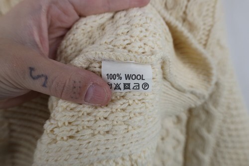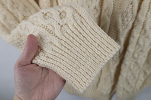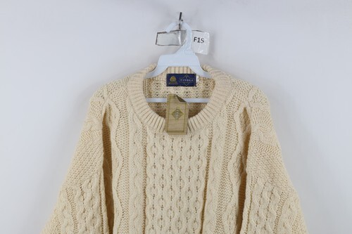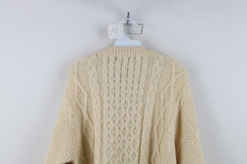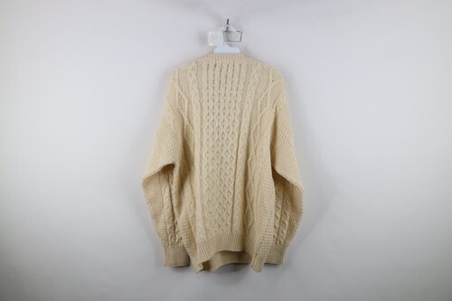 - Deadstock Vintage 90s Mens Large Aran Fisherman Wool Cable Knit Sweater Cream