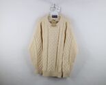 Deadstock Vintage 90s Mens Large Aran Fisherman Wool Cable Knit Sweater Cream