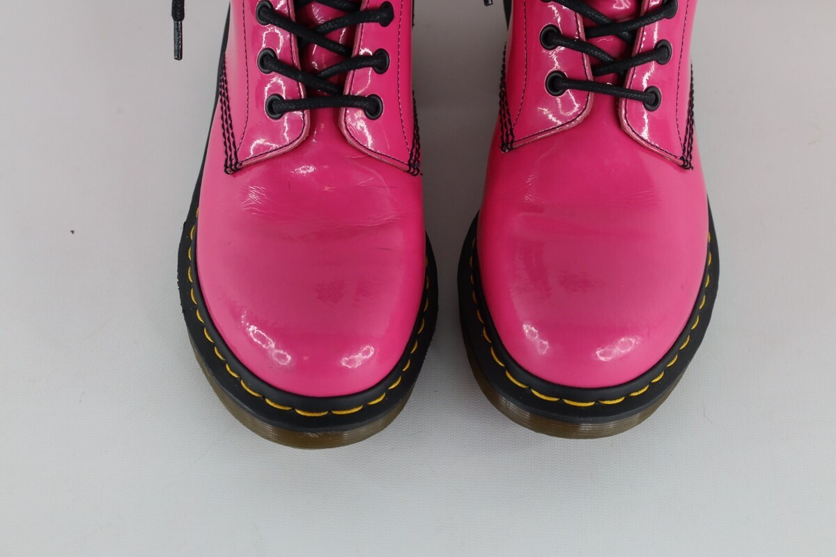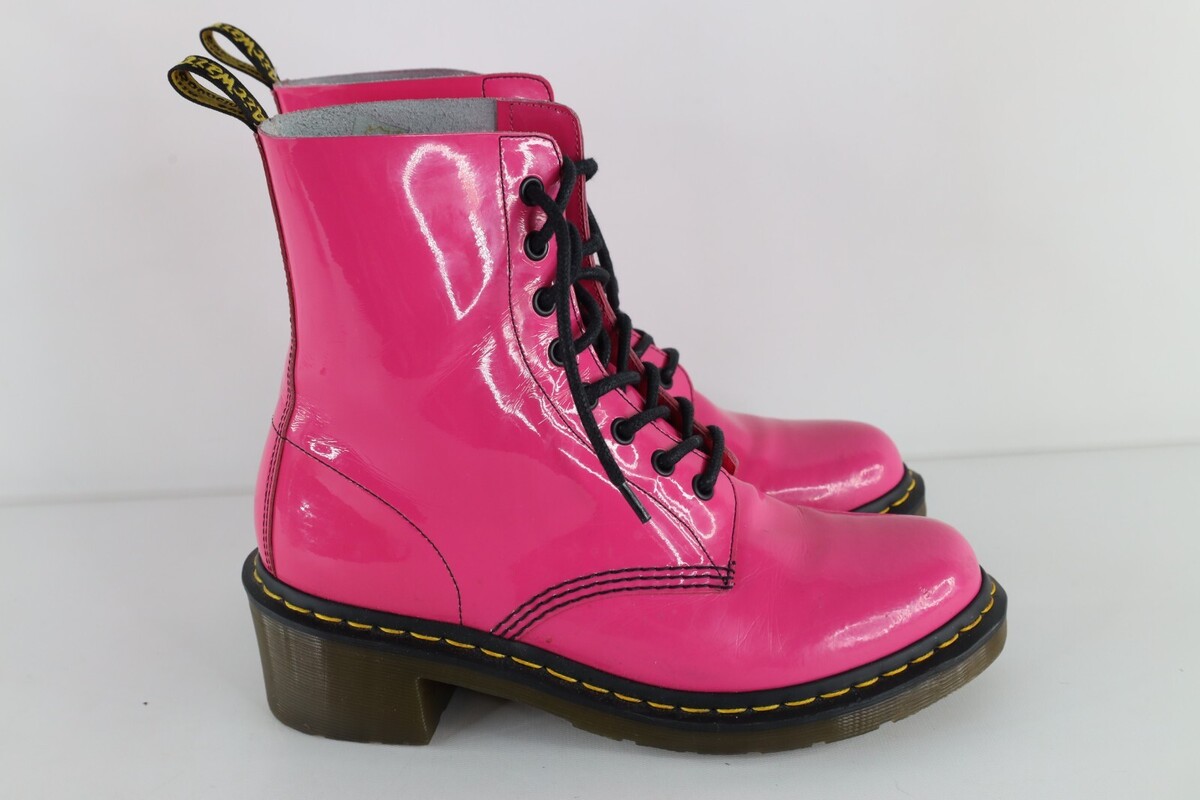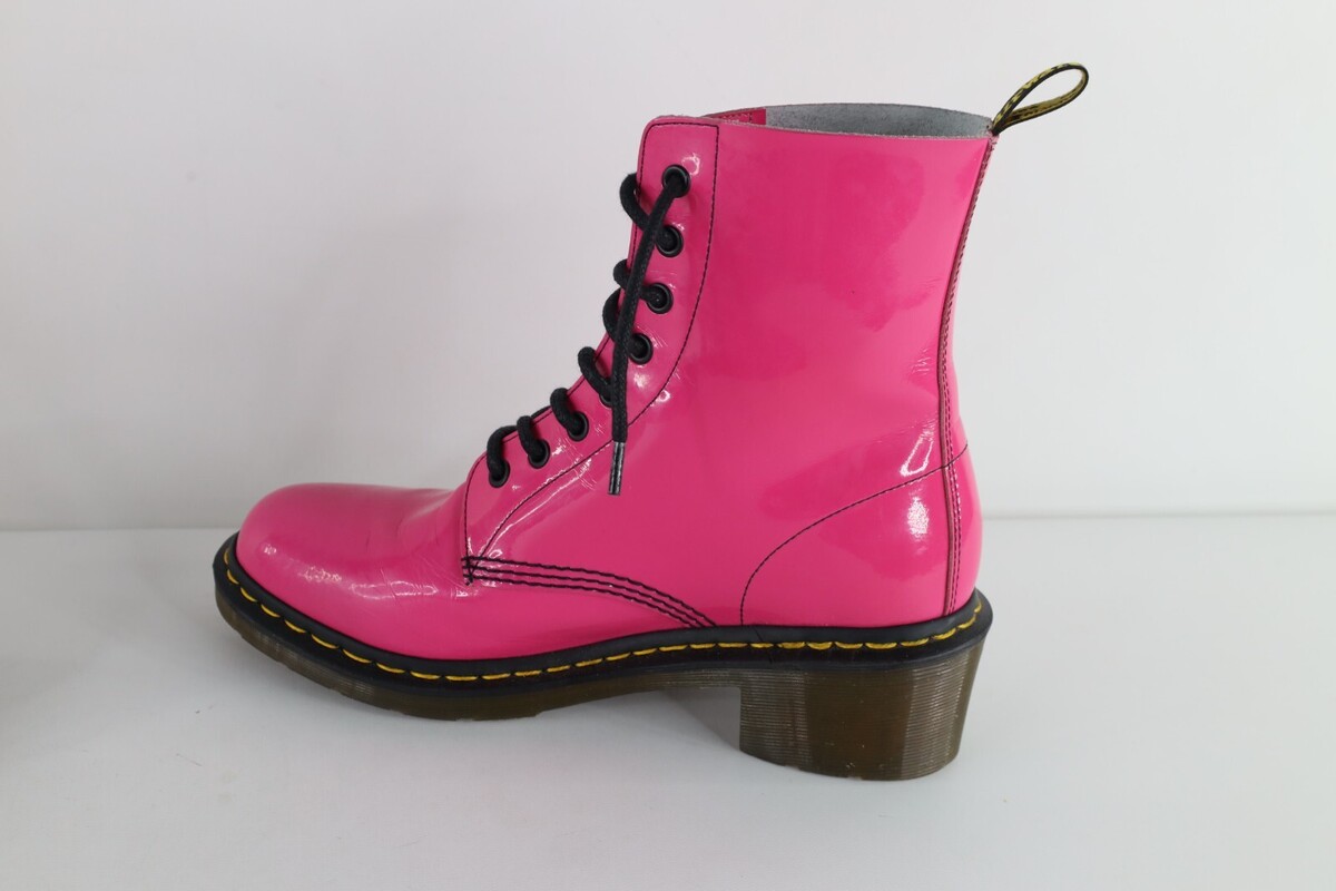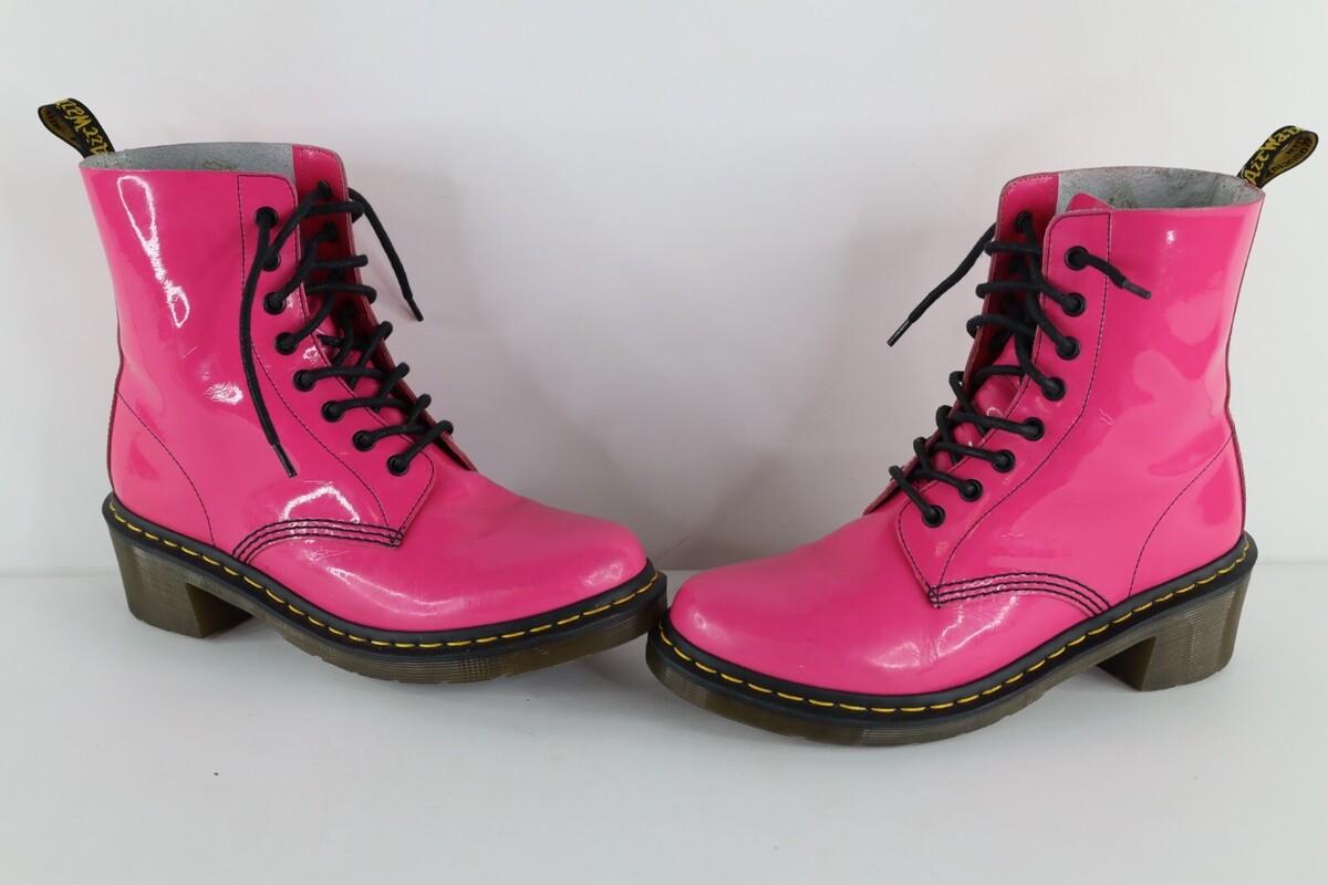 - Deadstock Vintage Dr Martens Womens 10 Clemency Patent Leather Heeled Boots Pink