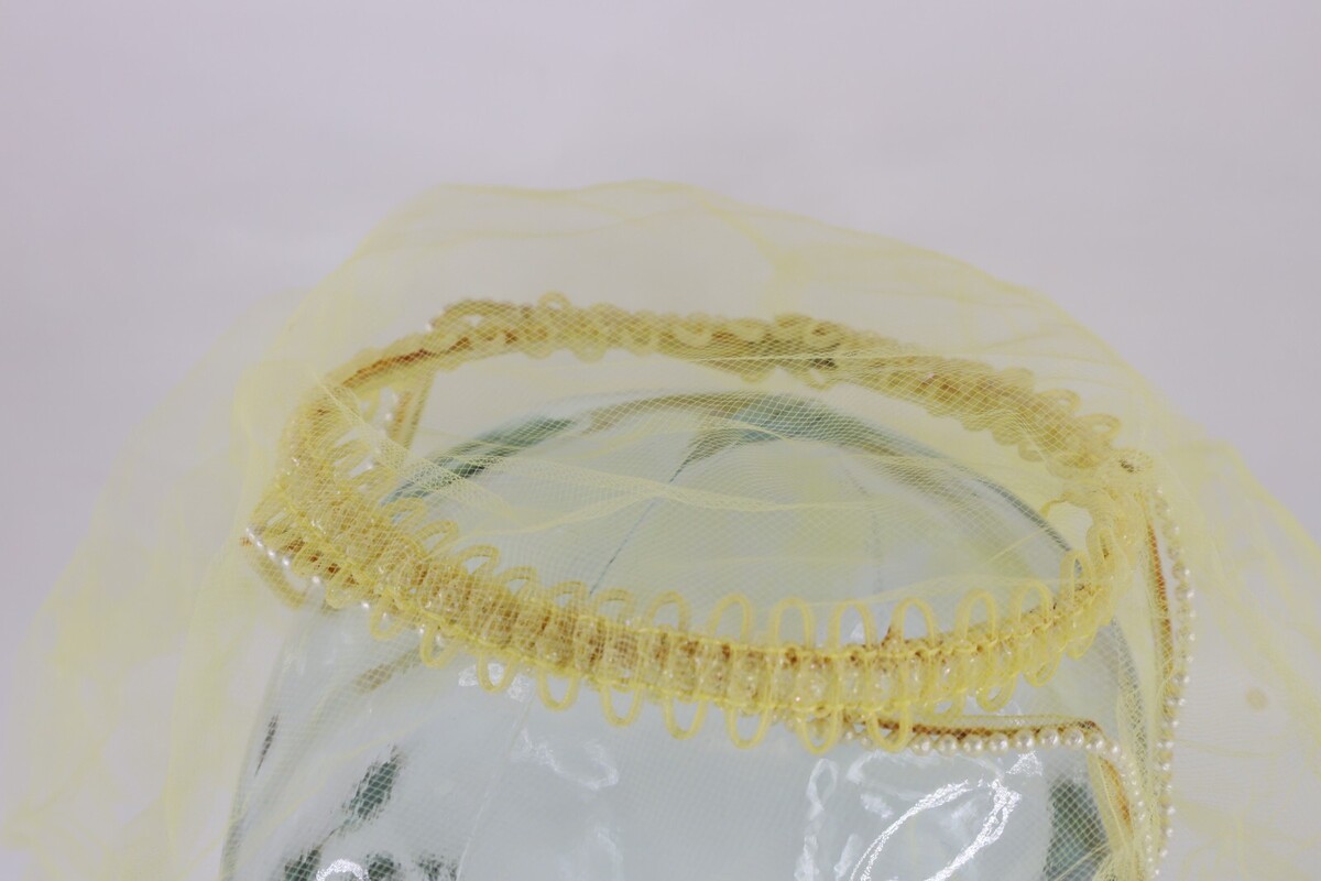 - Deadstock Vtg 60s 70s Juliet Chicago Bead Works Lace Beaded Bridal Veil Yellow