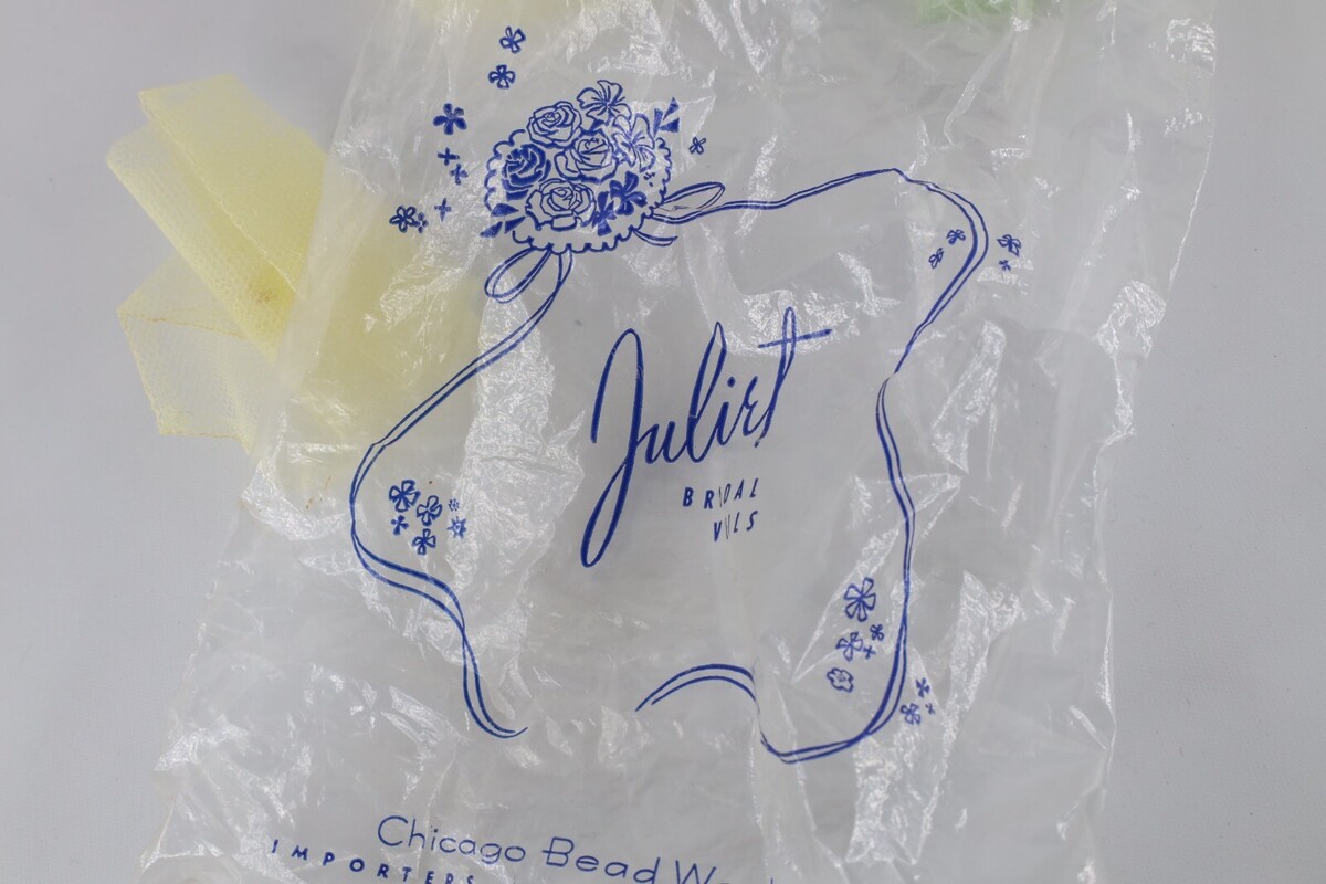 Deadstock Vtg 60s 70s Juliet Chicago Bead Works Lace Beaded Bridal Veil Yellow