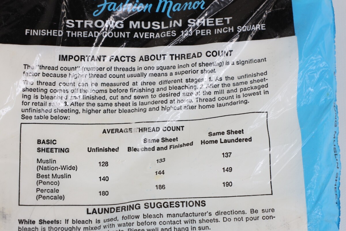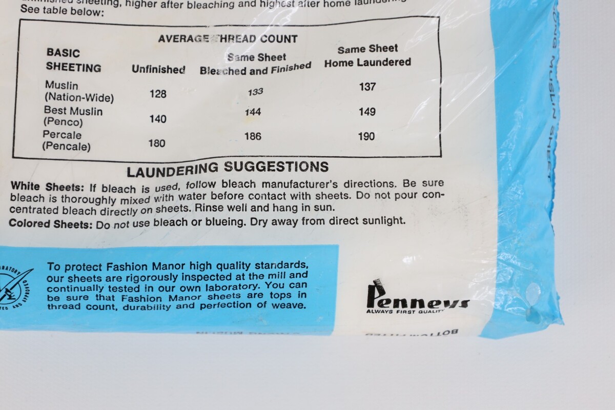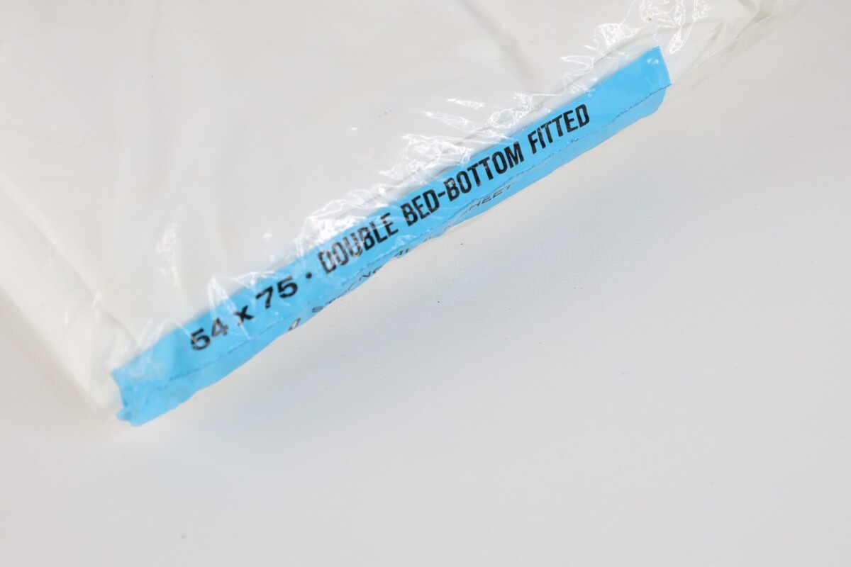 - Deadstock Vtg 70s Penneys Strong Muslin Double Bed Fitted Sheet White 54x75 USA