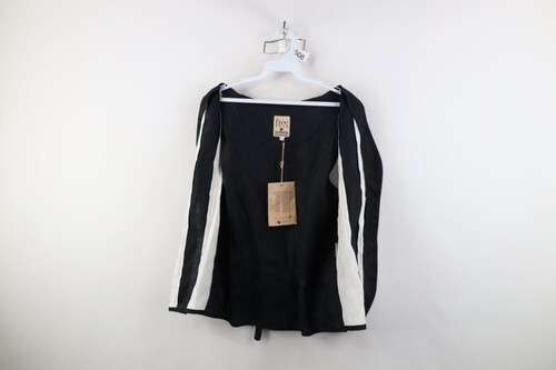 Deadstock Vtg 90s Streetwear Womens Large Striped Linen Tie Back Vest Jacket USA