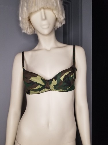 The Deborah Marquit NYC Camo Camouflage Bra is a vintage piece from the 1990s, this was designed and created for Madonna's tour dancers but the overstock was sold retail at The Future Inc. Made from 100% cotton with an underwired design and adjustable straps, this bra offers both comfort and support. The green camouflage pattern adds a touch of edgy flair to the piece, making it a versatile option for various themes such as designer, festival, army, biker, rock, and punk. This bra is a one-of-a-kind statement piece that will stand out in any wardrobe. I use recycled materials for packaging whenever possible. Dnstrs Please ask questions as all sales are final.