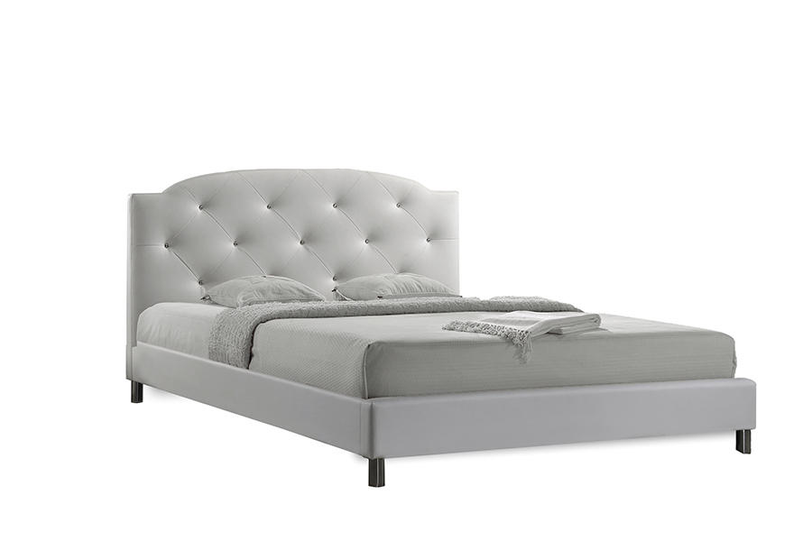 Understated elegance lies at the core of our Declan Wood and Leather Contemporary Full-Size Bed. With its white faux-leather accenting, crystal tufted headboard and chrome legs, this contemporary platform bed recalls a time of opulence yet boasts a discount price tag. This seemingly impossible pairing makes the Declan a fantastic value in contemporary bedroom furniture.