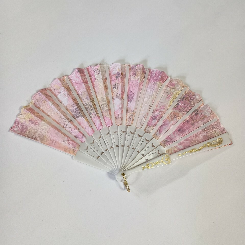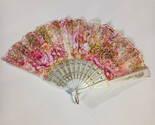 - Decorative Folding Fan Fabric Floral Pattern Pink With Gold Glitter