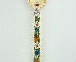Hand-painted face of blue-eyed lady on spoon part wearing a white scarf with red polka dots. The handle is a floral design.