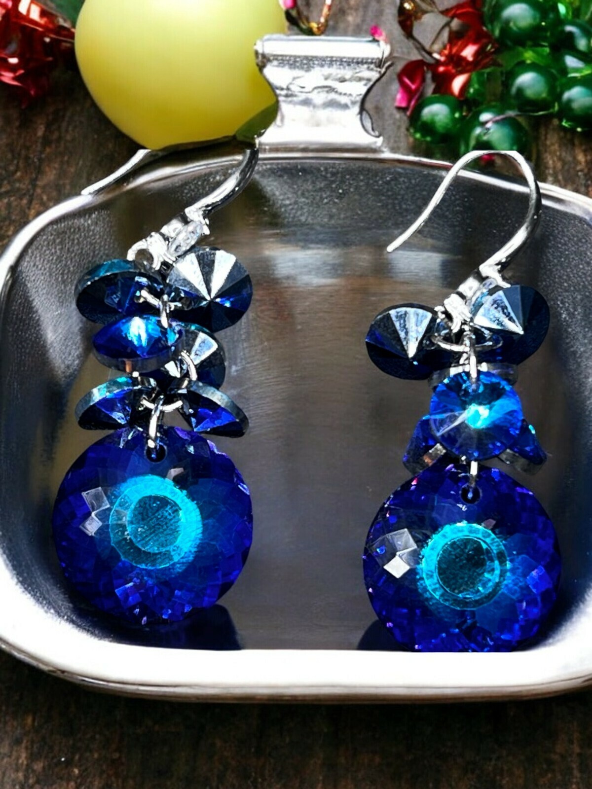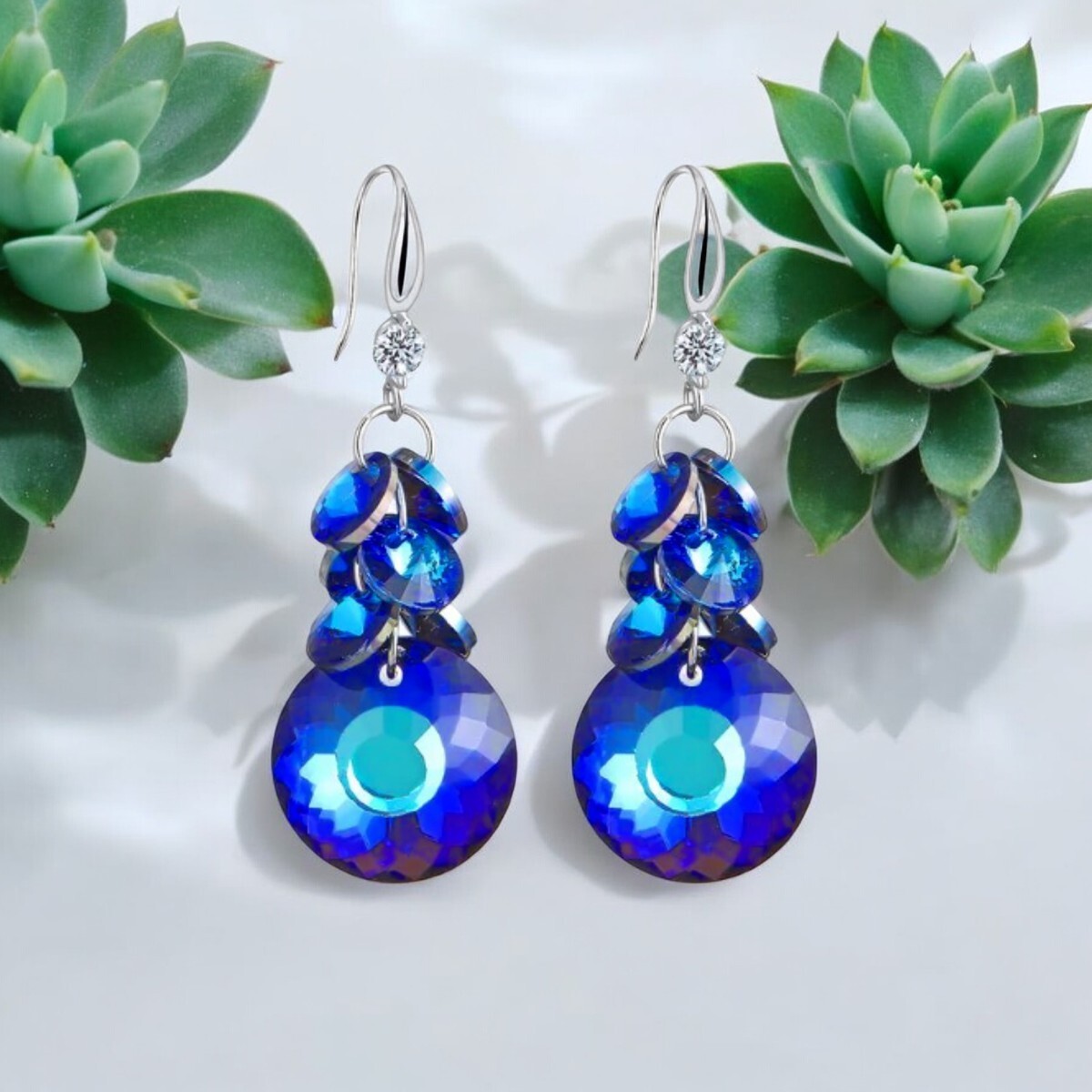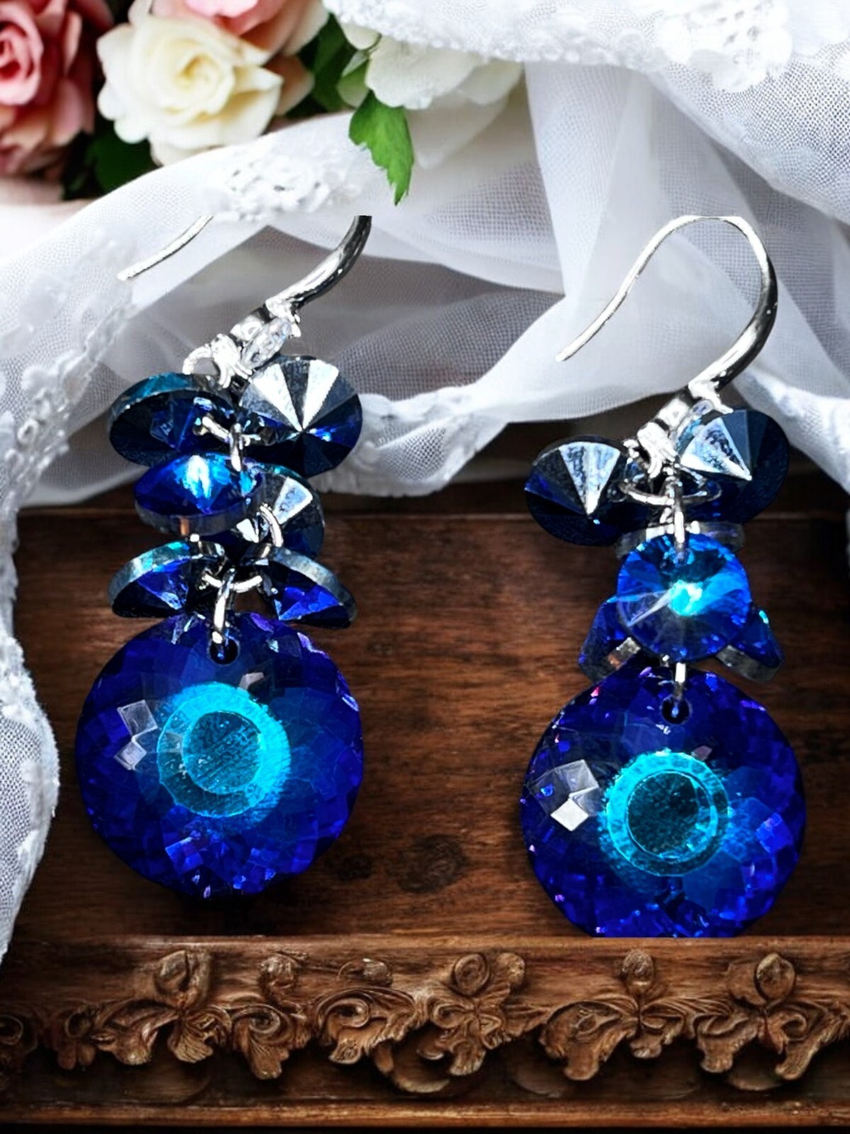 Add a touch of elegance with these deep blue crystal dangle drop earrings, designed to shine and stand out. The sparkling faceted crystals catch the light beautifully, making these earrings perfect for both formal occasions and everyday wear.